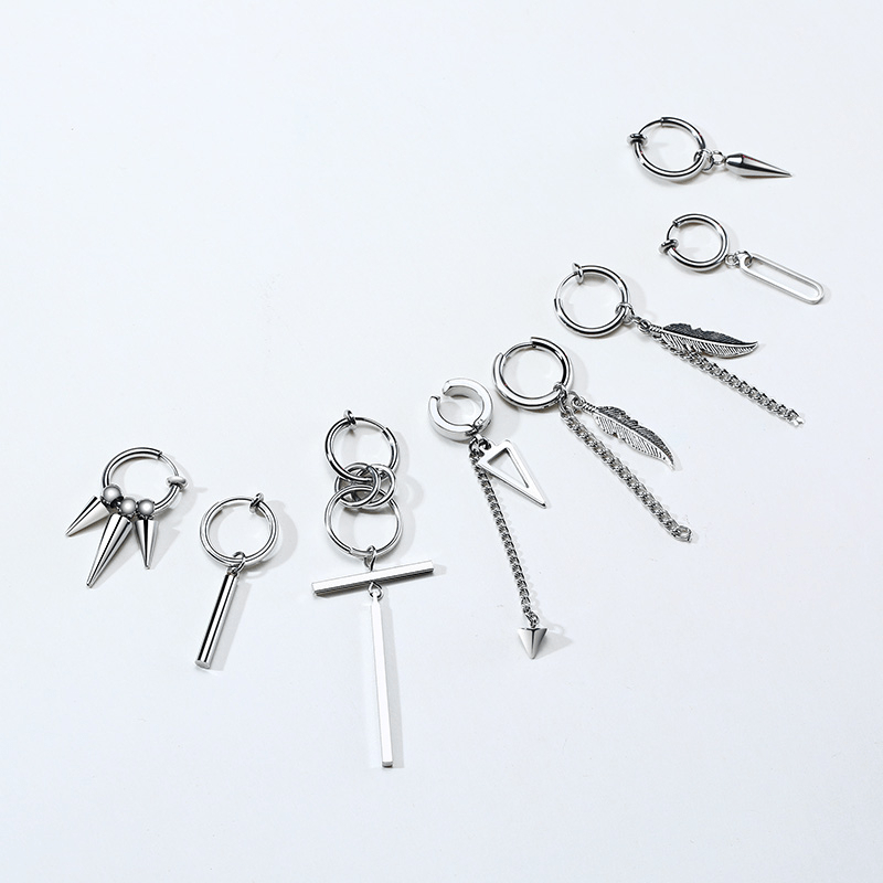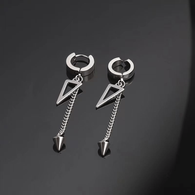 Add a touch of edgy style to your look with these geometric triangle drop earrings. Perfect for men who appreciate unique ear accessories with a punk vibe.