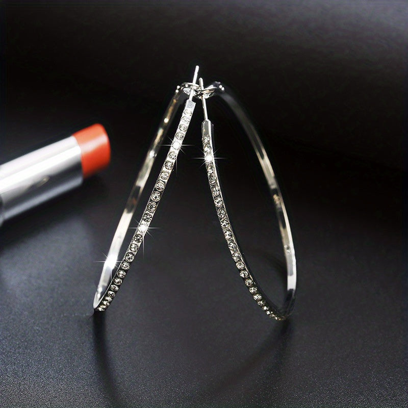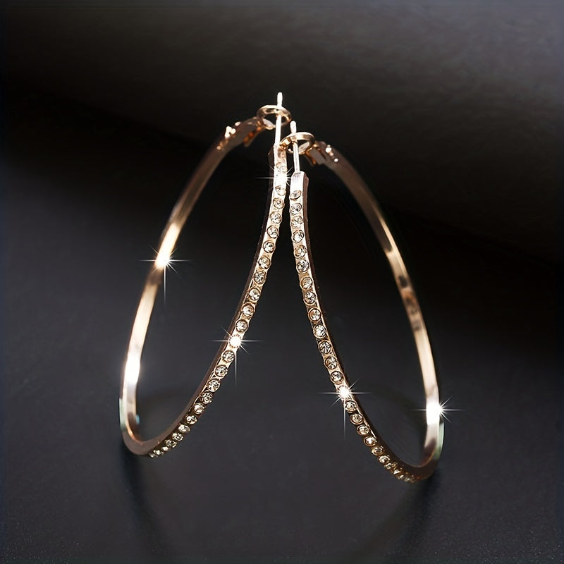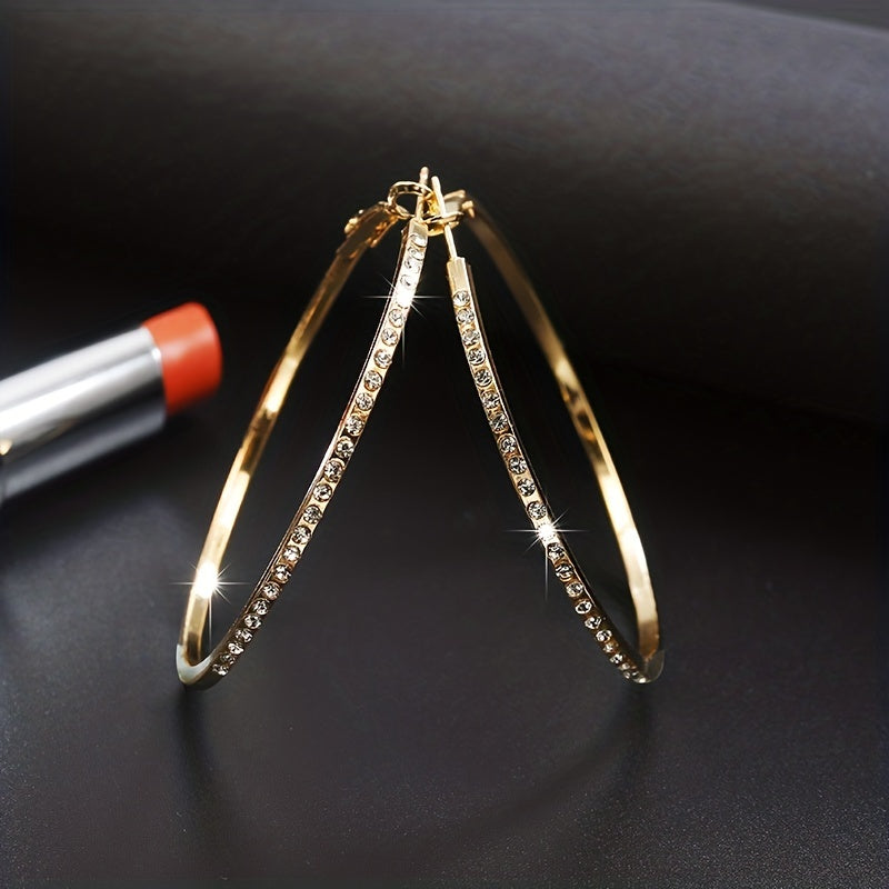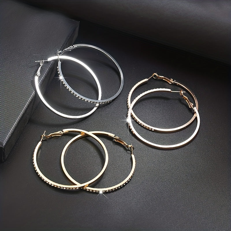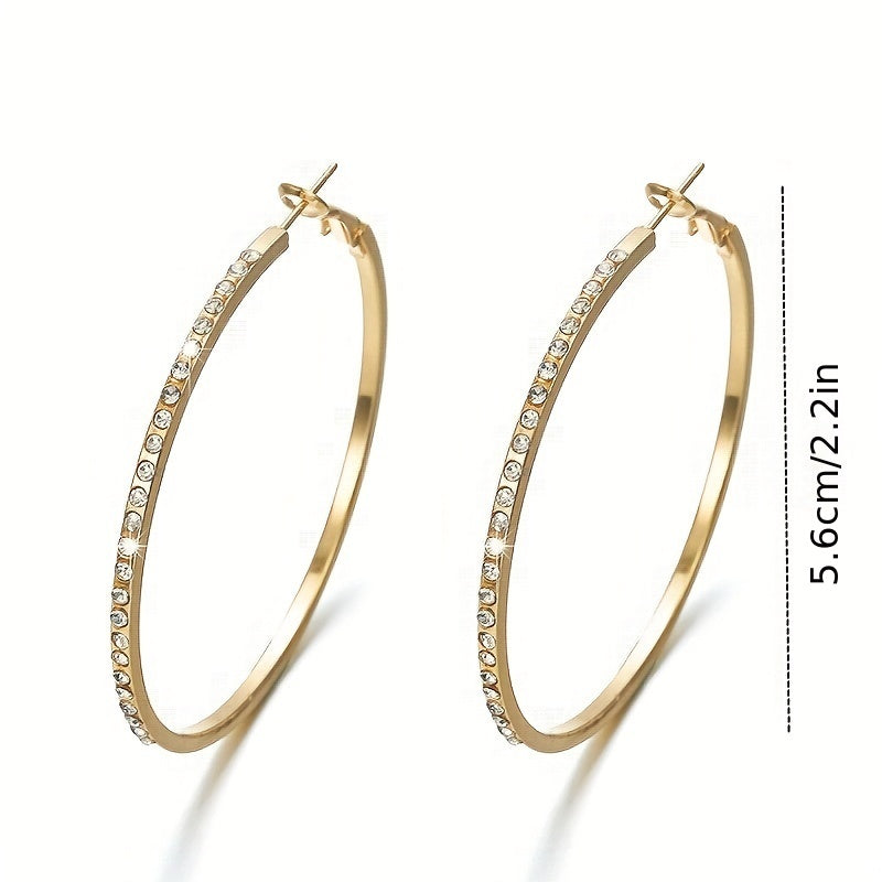 Elevate your style with these fashionable large round earrings featuring artificial diamond studs. The geometric design adds a touch of sophistication.