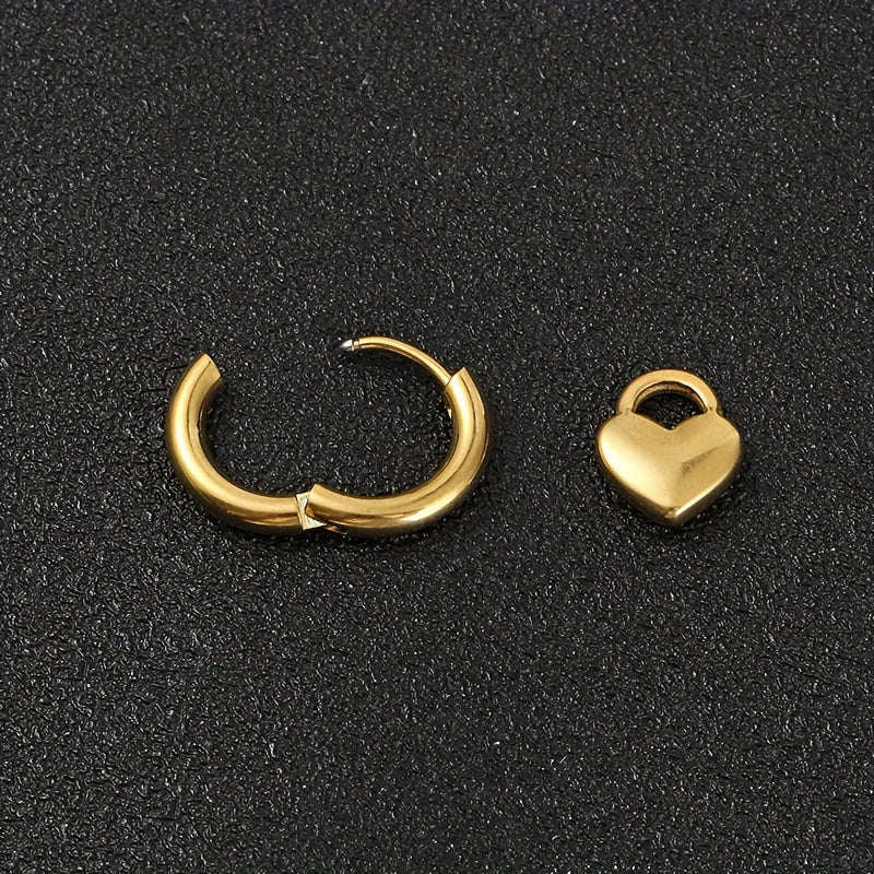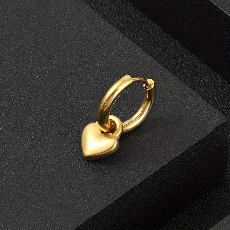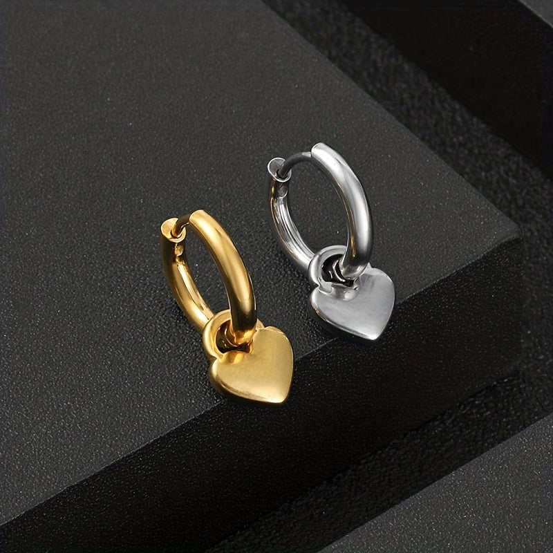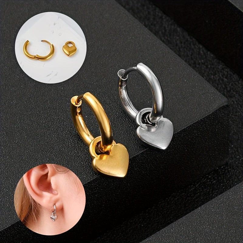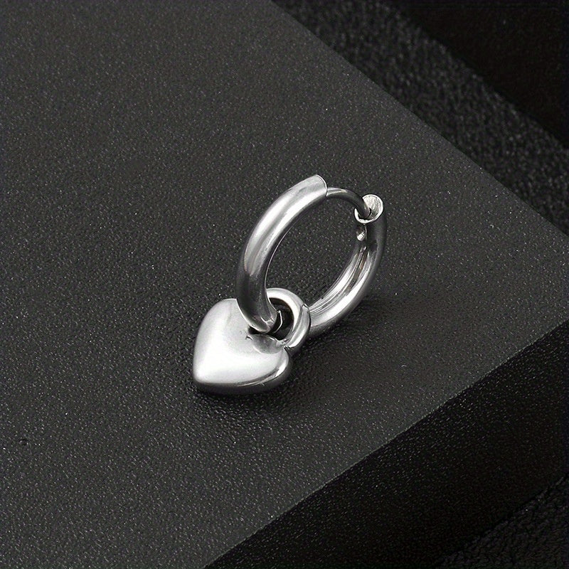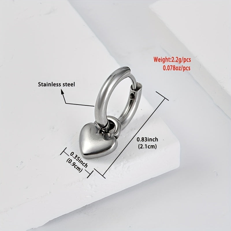 Add a touch of style with this set of stainless steel earrings featuring a round design and heart pendant. The ear bone buckle ensures a secure fit.