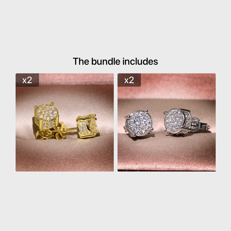 These round stud earrings feature four faux diamonds in a micro set design. Perfect for adding a touch of sparkle to your look.