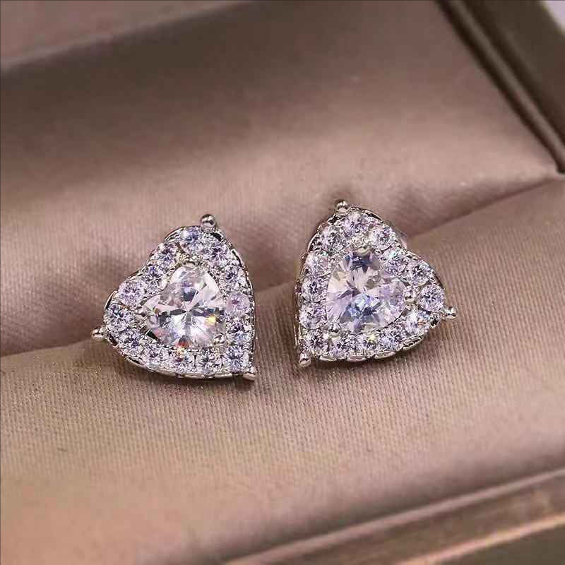 Enhance your style with these elegant silver heart zircon earrings that exude sophistication and charm.