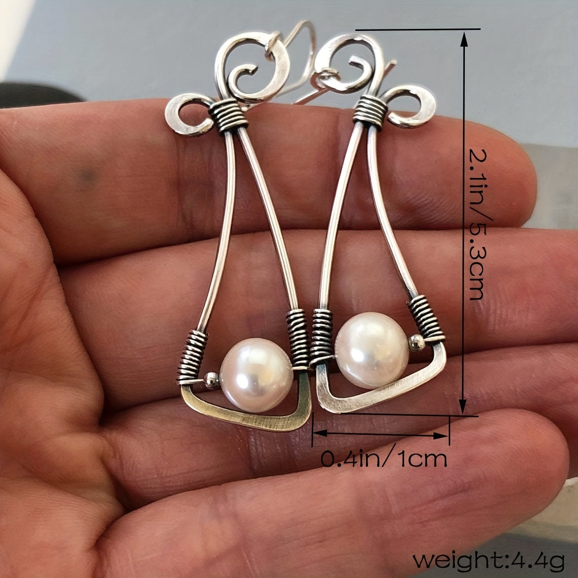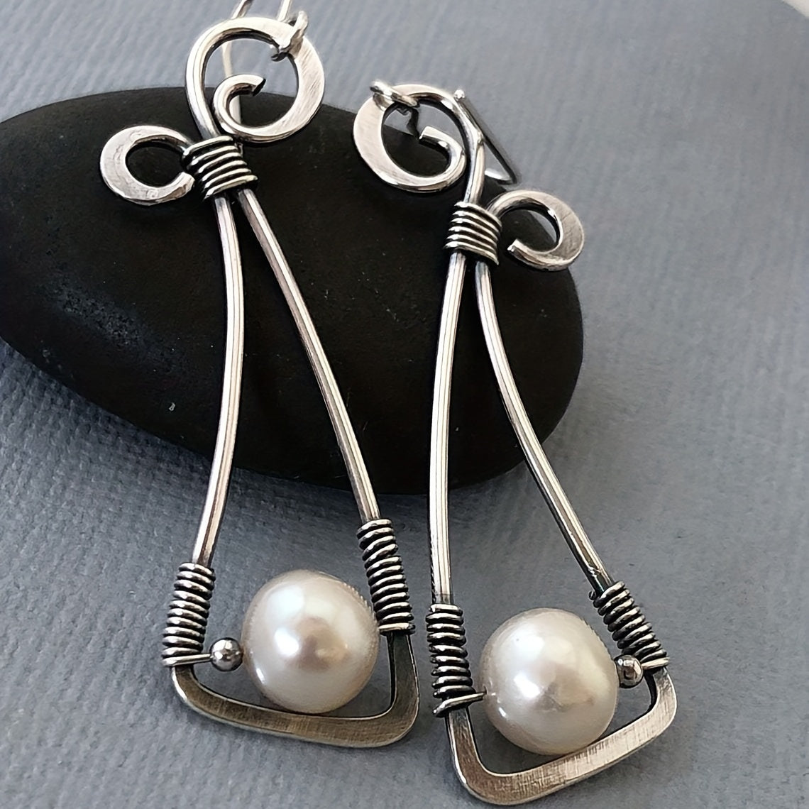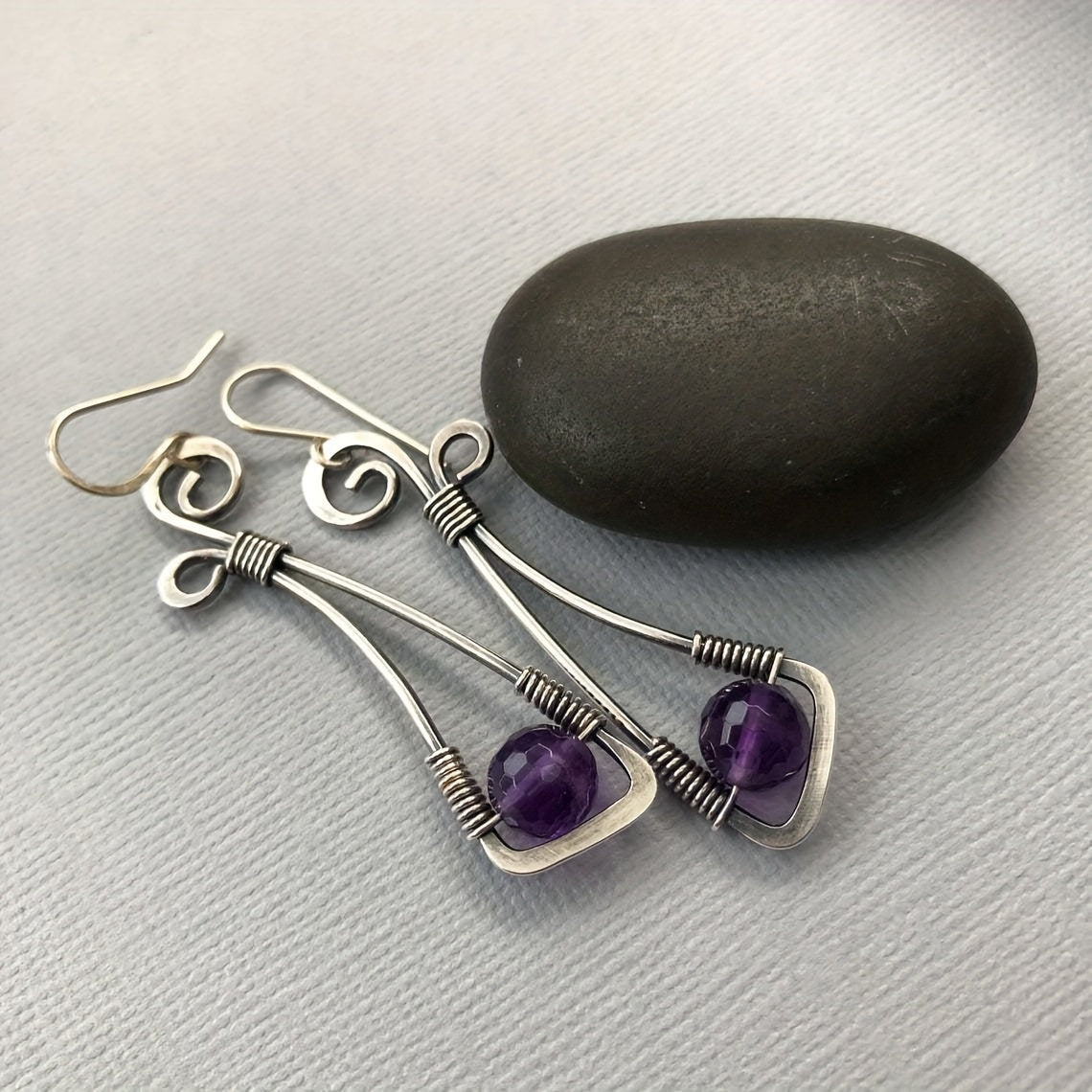 Add a touch of creativity to your accessories with these vintage-inspired silver long earrings adorned with faux pearls and amethyst stones.