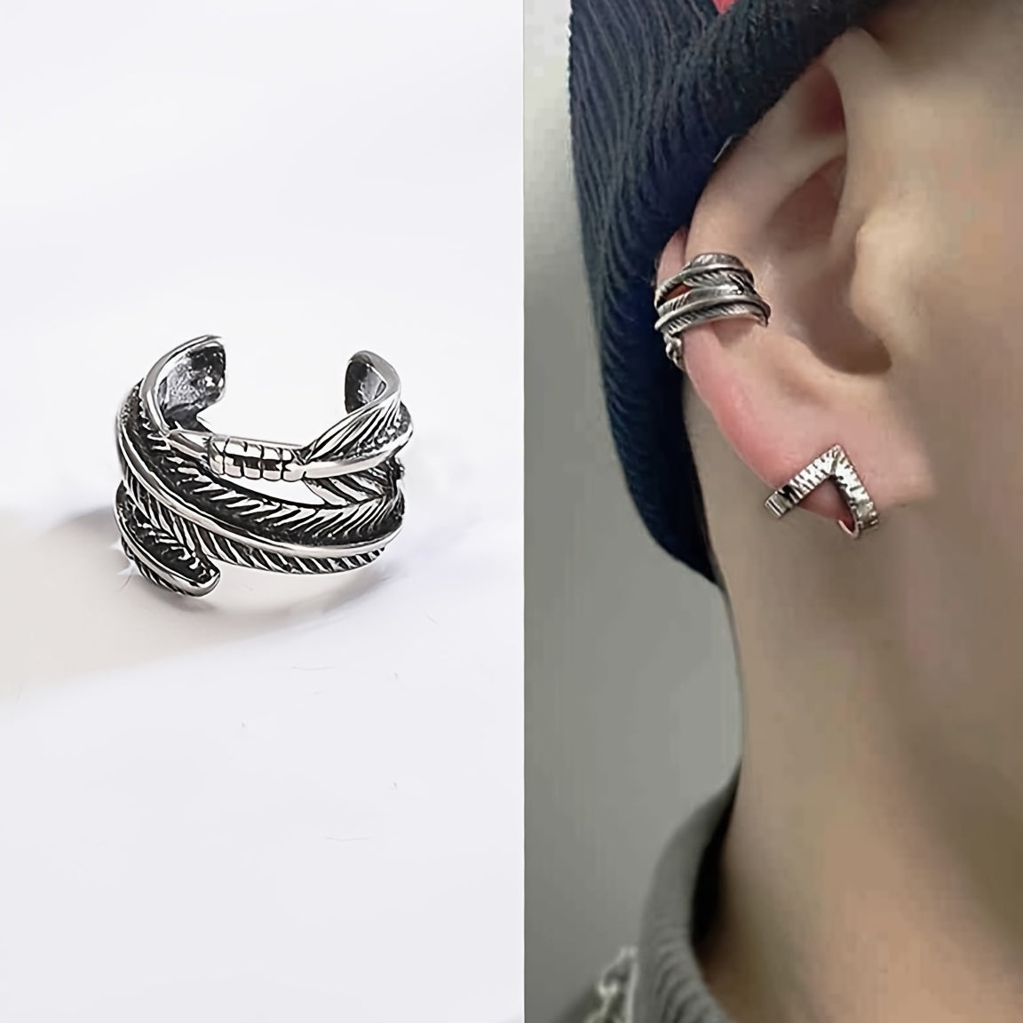 This stylish men's earring features a bone clip design, perfect for those without ear piercings.
