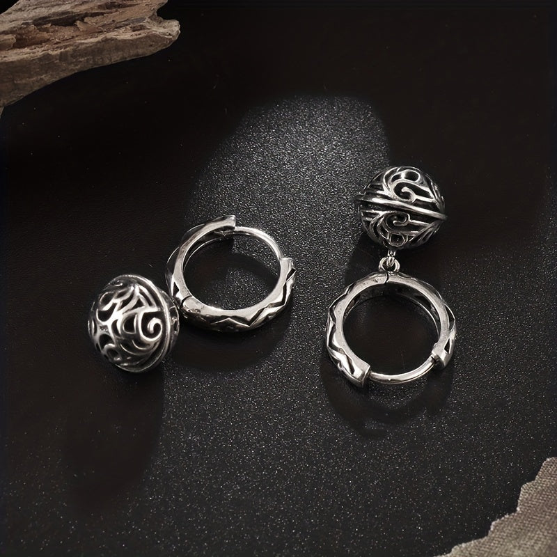 These stylish men's drop earrings feature a sphere hollow design, perfect for adding a retro touch to any casual outfit. Ideal as a gift for those who love rock-inspired jewelry.