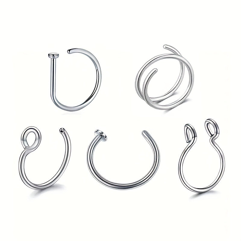Add a touch of style to your look with this set of stainless steel body jewelry, including a nose piercing, lip piercing, and earrings. Perfect for men who want to make a statement.