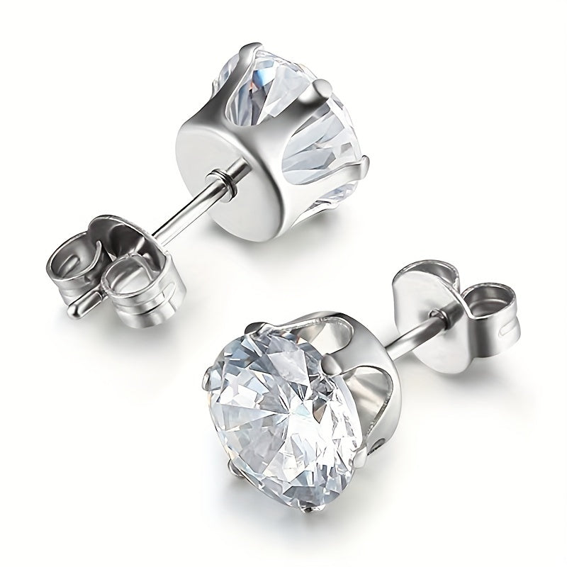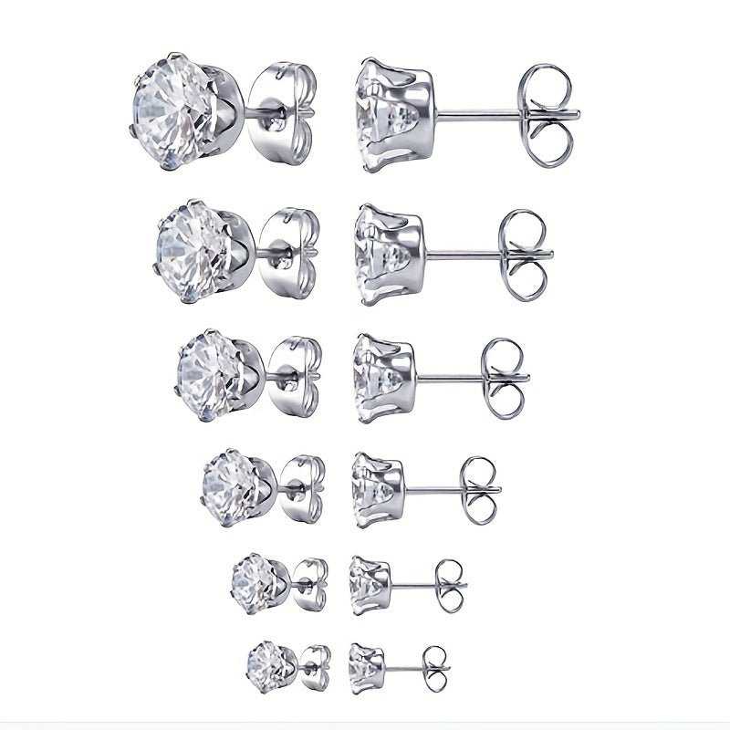 These stainless steel claw stud earrings feature a six claw design with integrated zircon, perfect for both men and women.