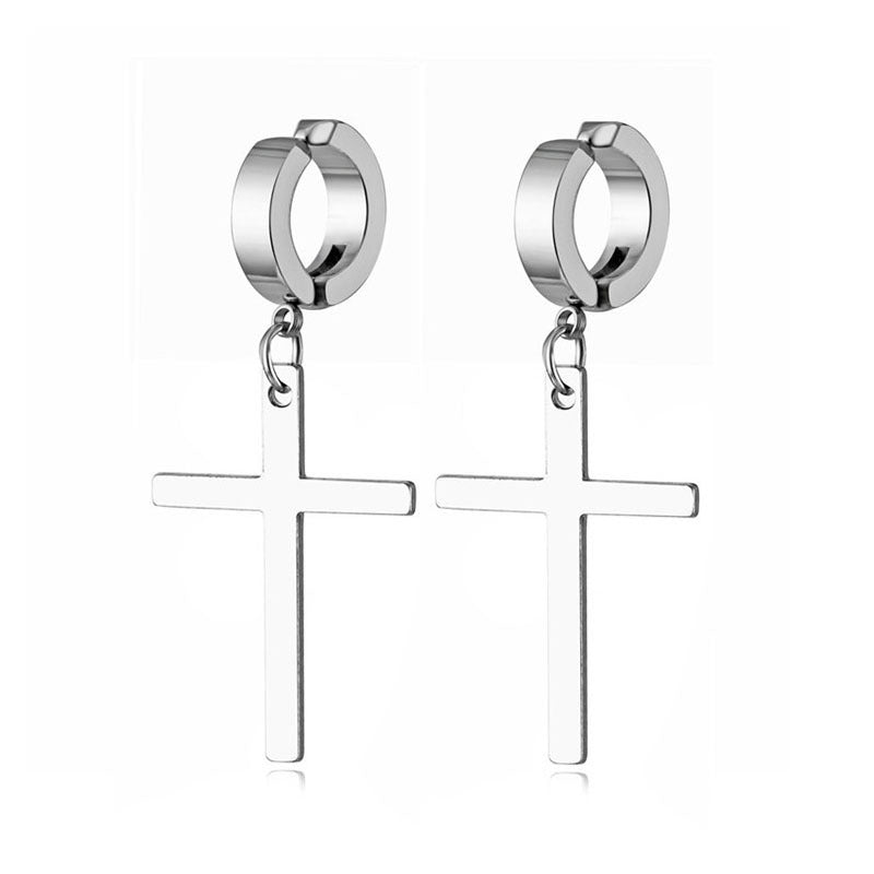 These stylish stainless steel ear clips feature a cross design, perfect for adding a touch of faith to your look.