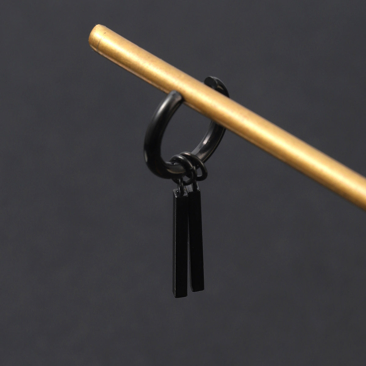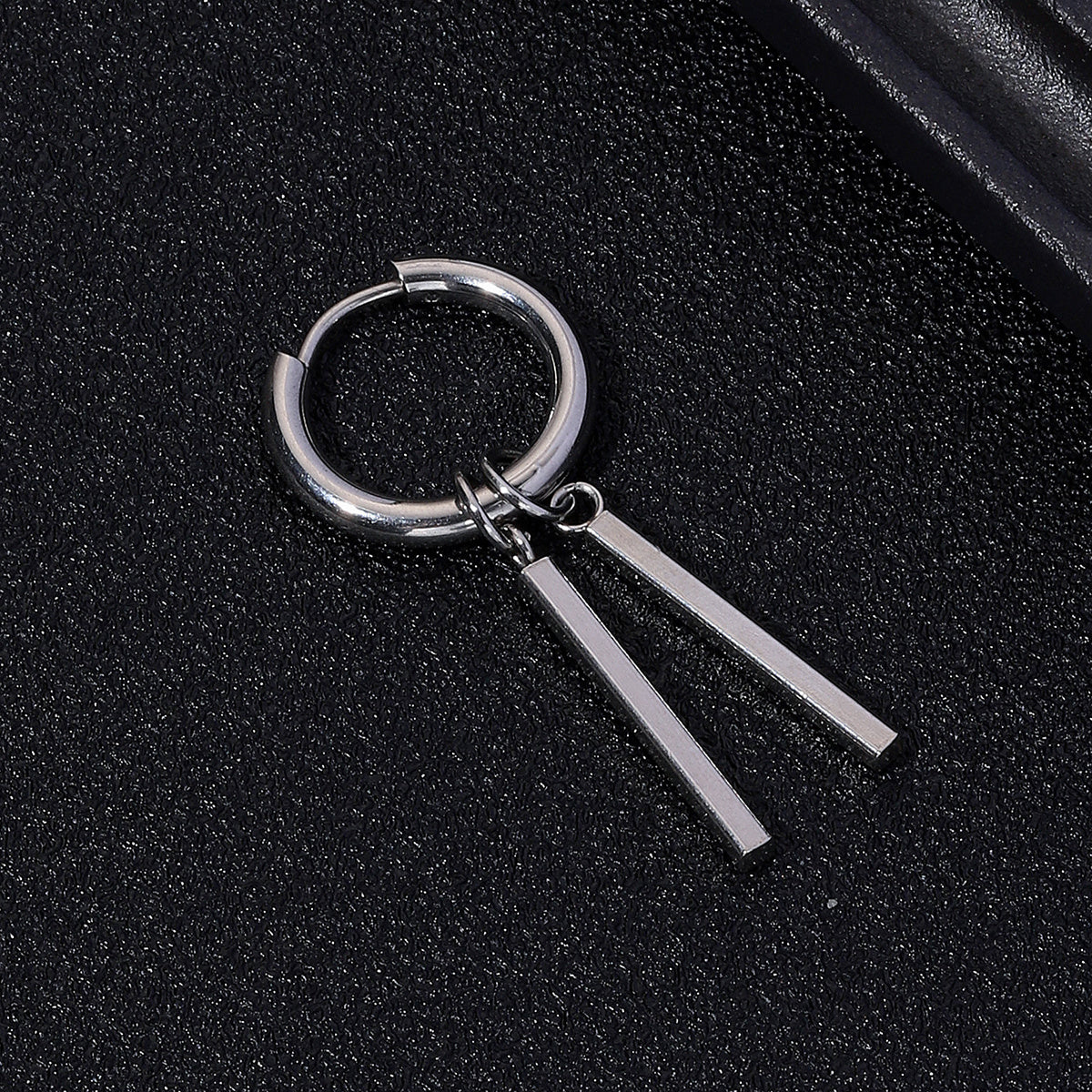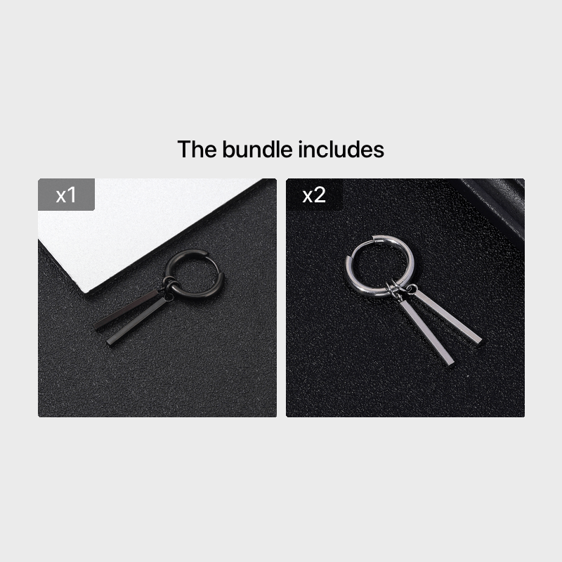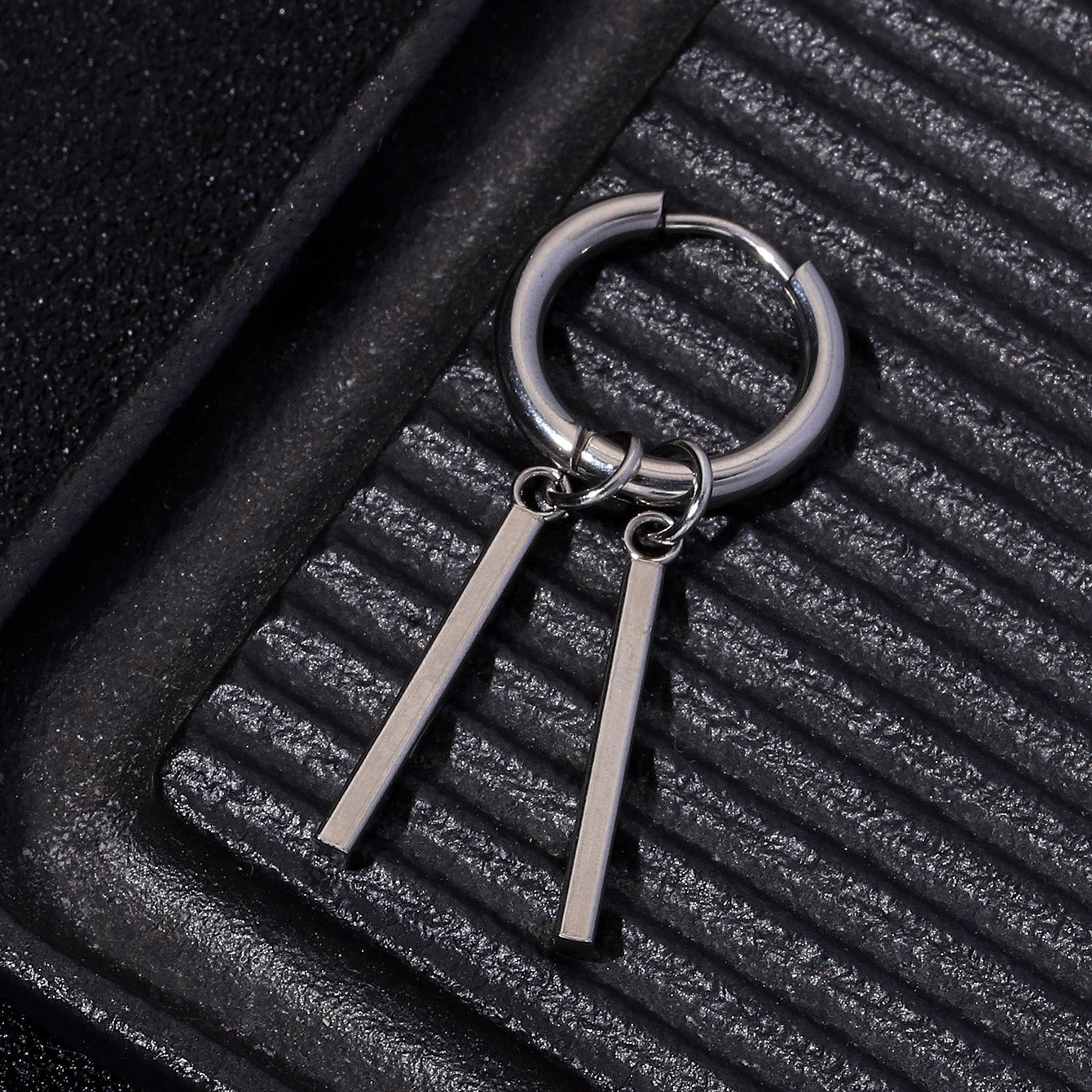 Upgrade your style with these stylish stainless steel drop earrings featuring double baguette design.