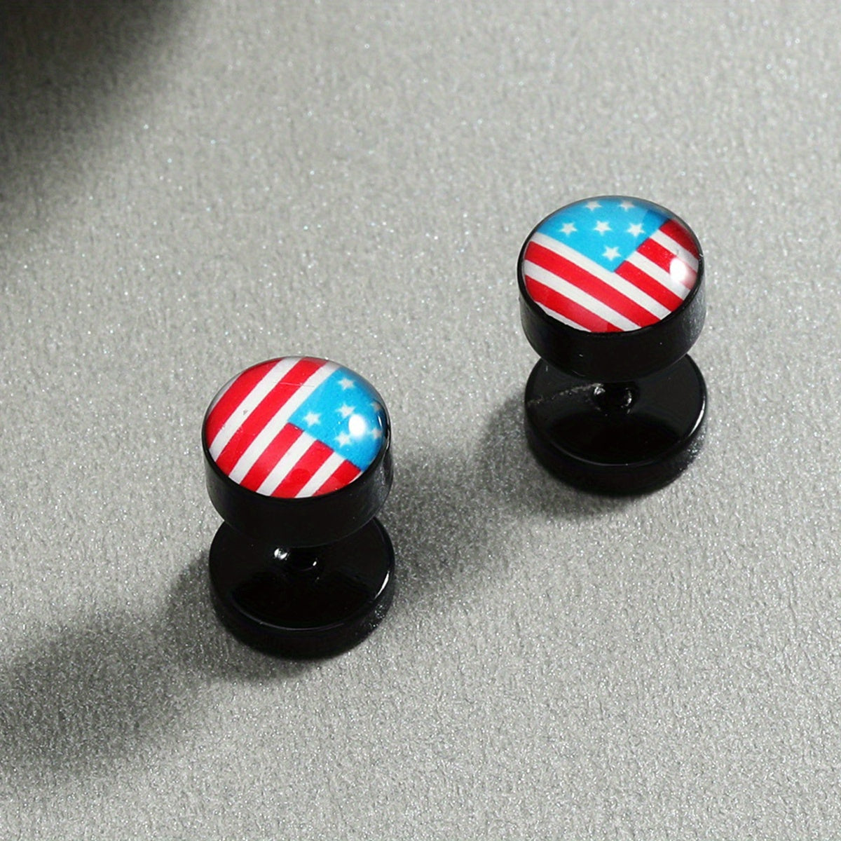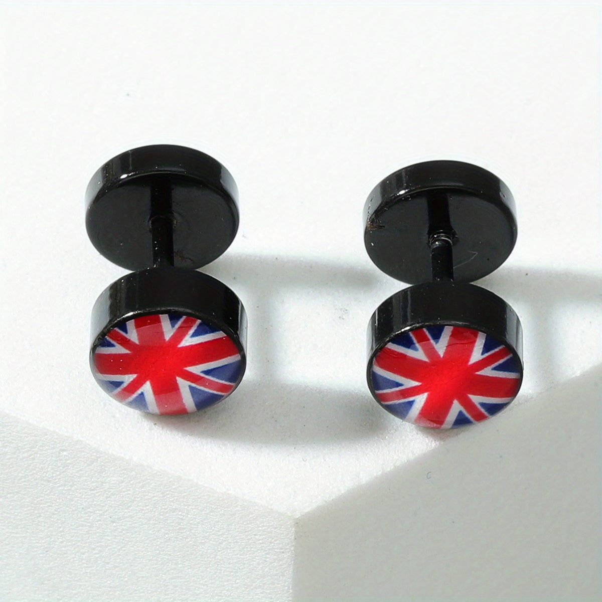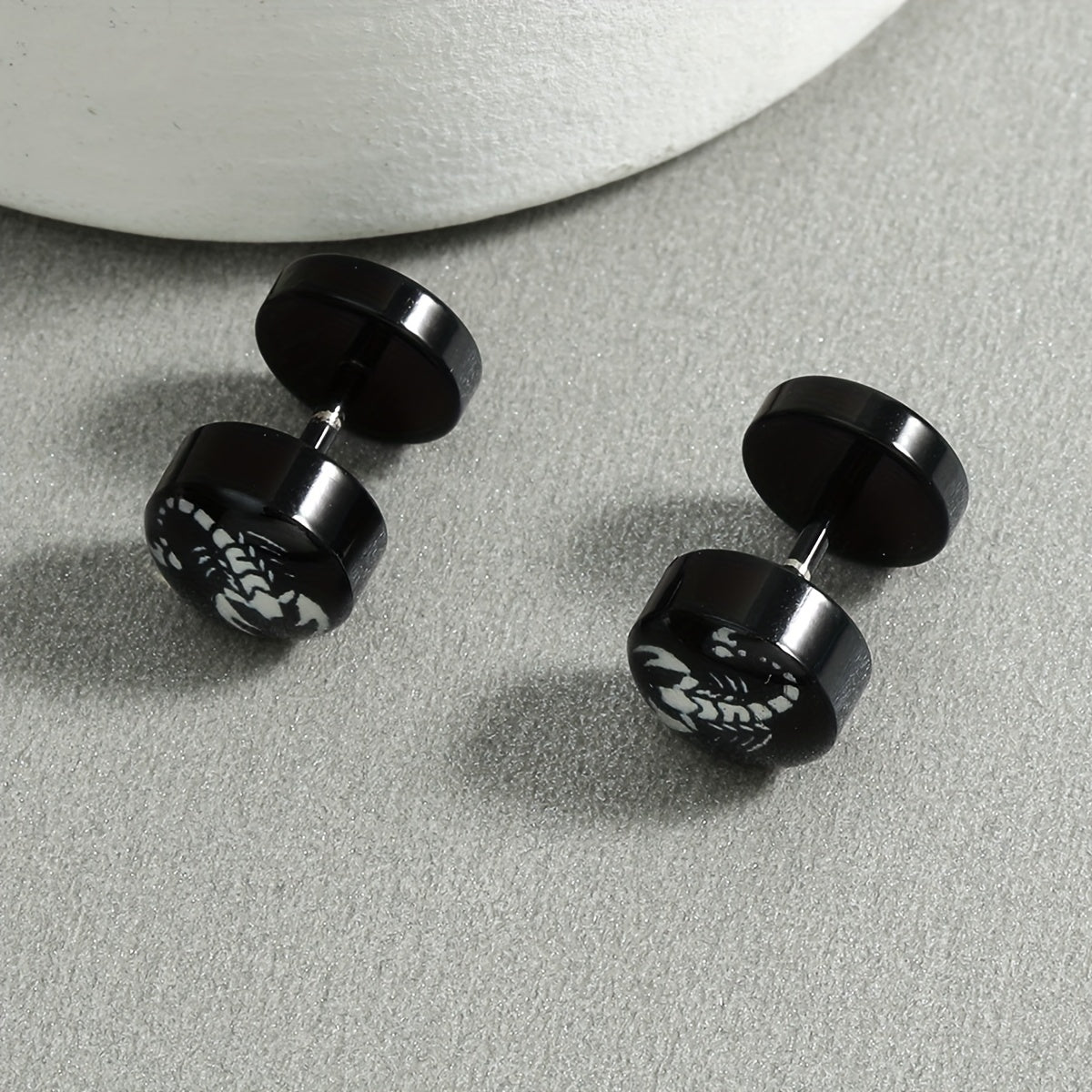 Express your style with these unique stainless steel stud earrings featuring flag, maple leaf, scorpion, and skull designs. Perfect for casual or edgy looks.