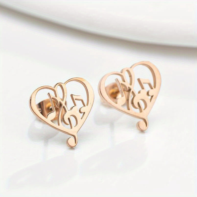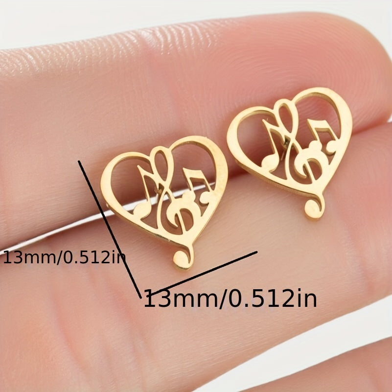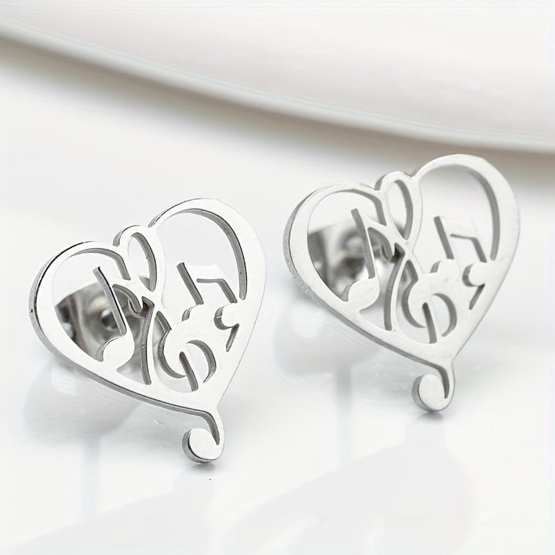 These unique earrings feature a geometric heart shape design with music symbols, perfect for men who appreciate musical motifs in their accessories.