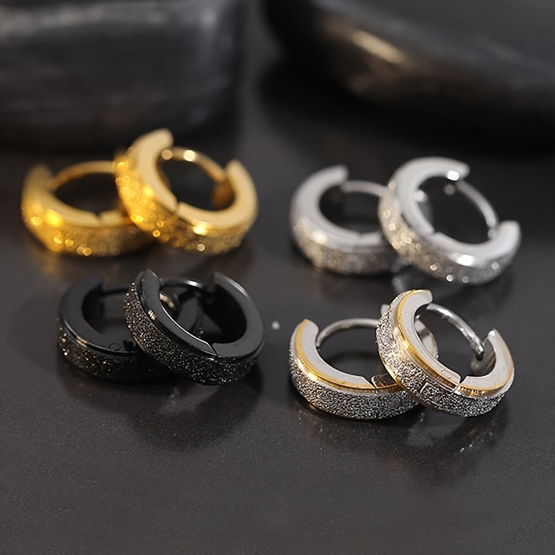 Stand out with these bright stainless steel earrings, featuring a punk frosted design.
