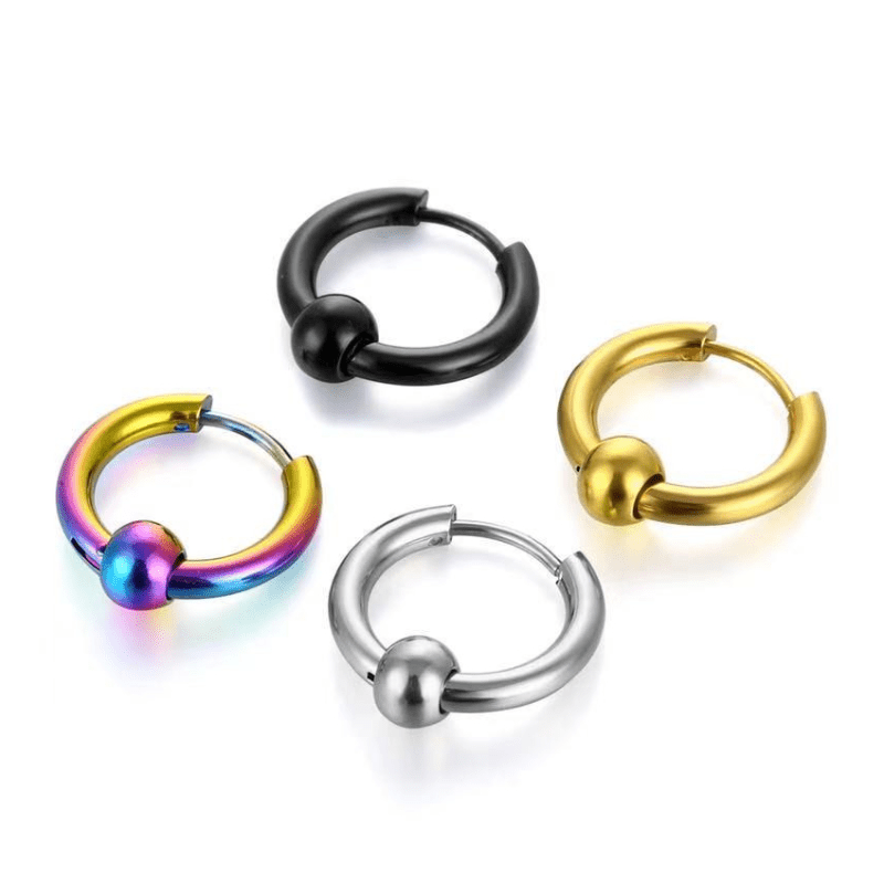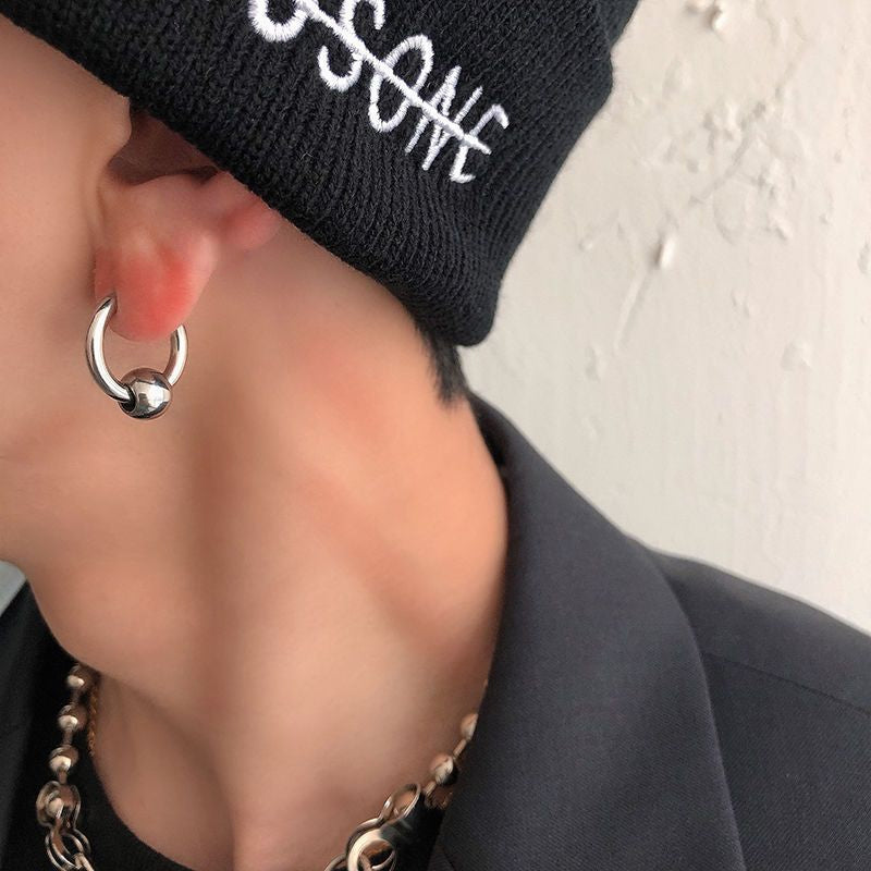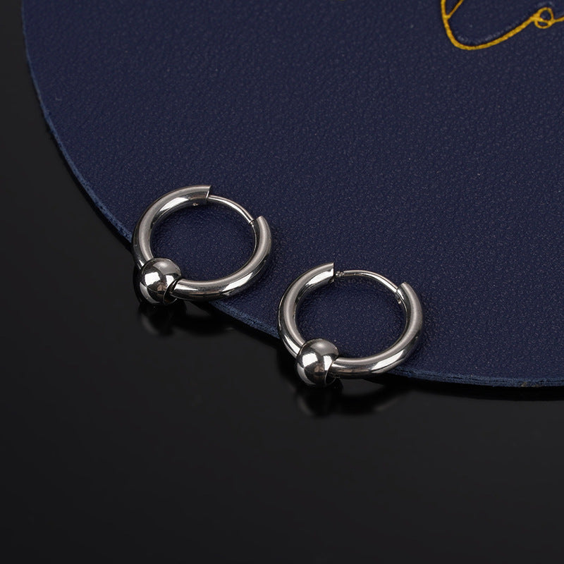 Men's Stainless Steel Single Bead Earring Circle Hoop