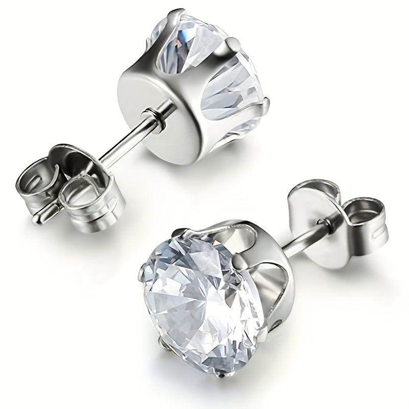 Add a touch of style to your look with these stainless steel zircon stud earrings. Perfect for everyday wear or special occasions, these earrings are a great addition to any accessory collection.