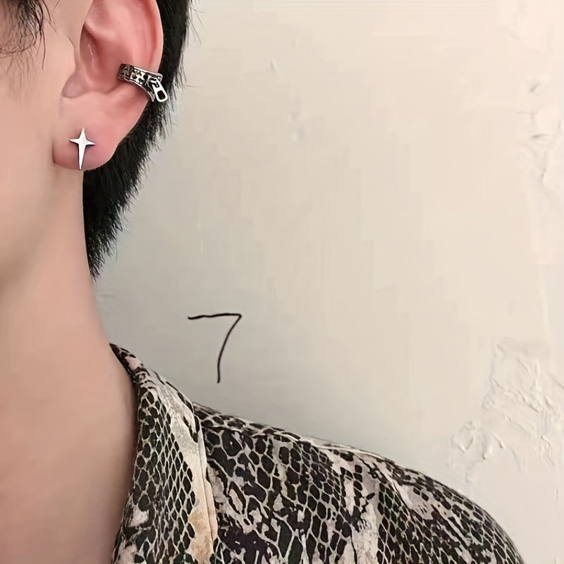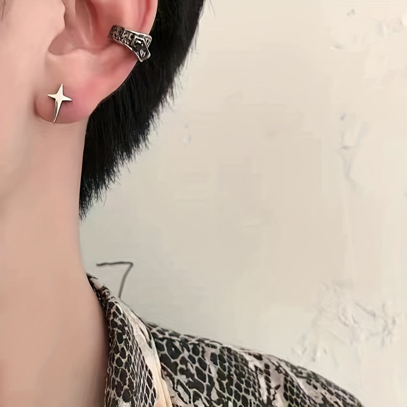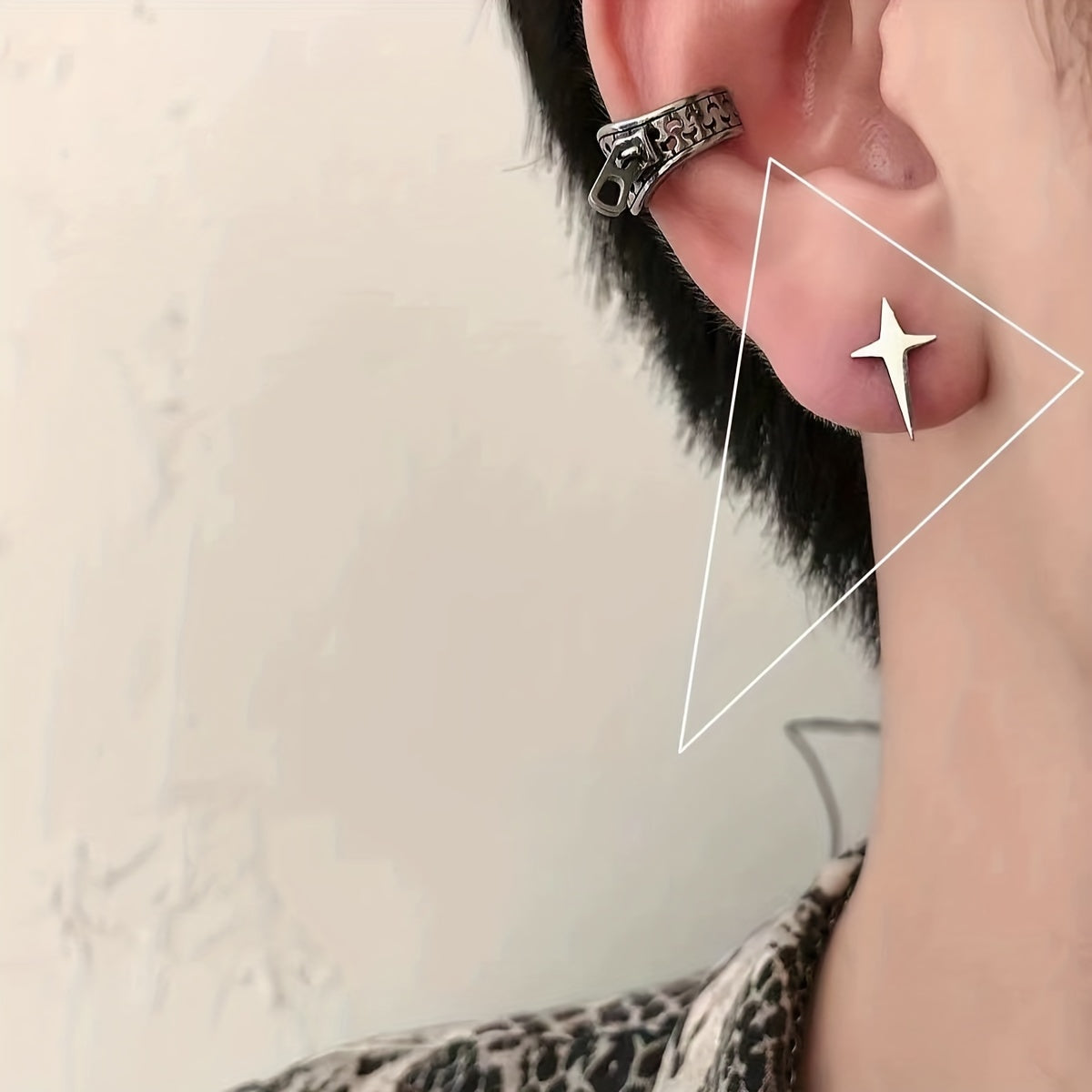 Men's Star Stud Earrings Hip Hop Ear Jewelry Couple Accessories
