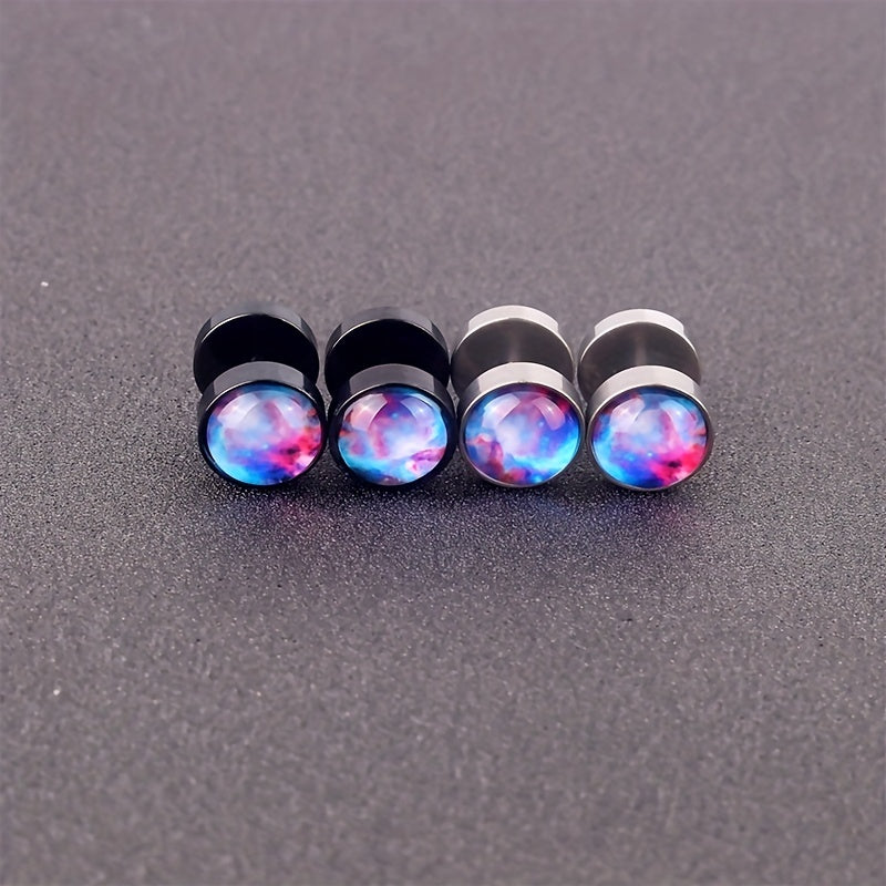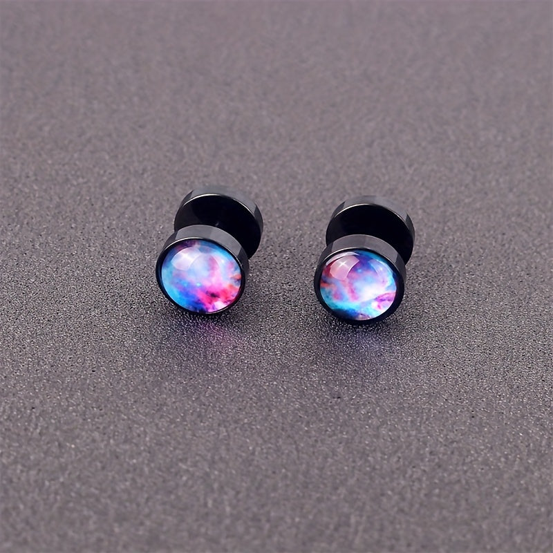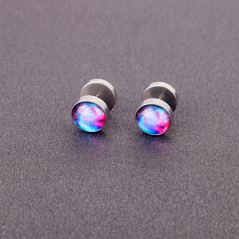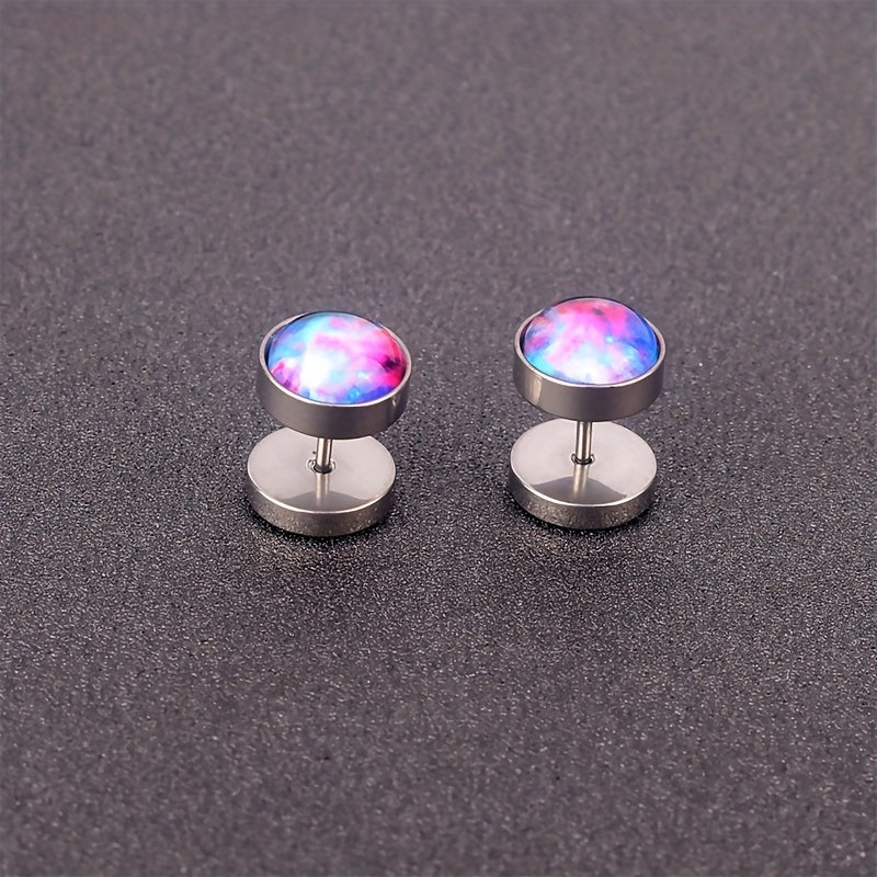 Add a touch of style to your outfit with these starry sky dumbbell stud earrings made of durable stainless steel.
