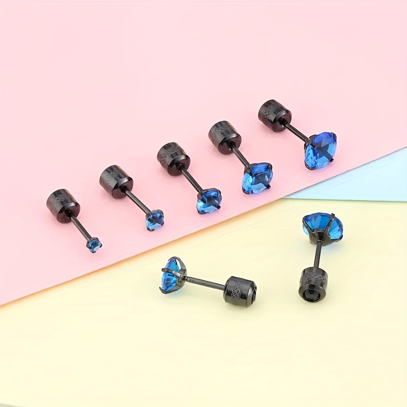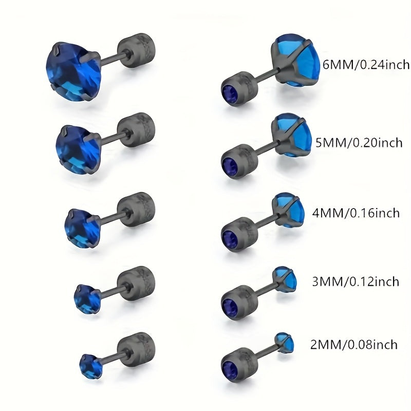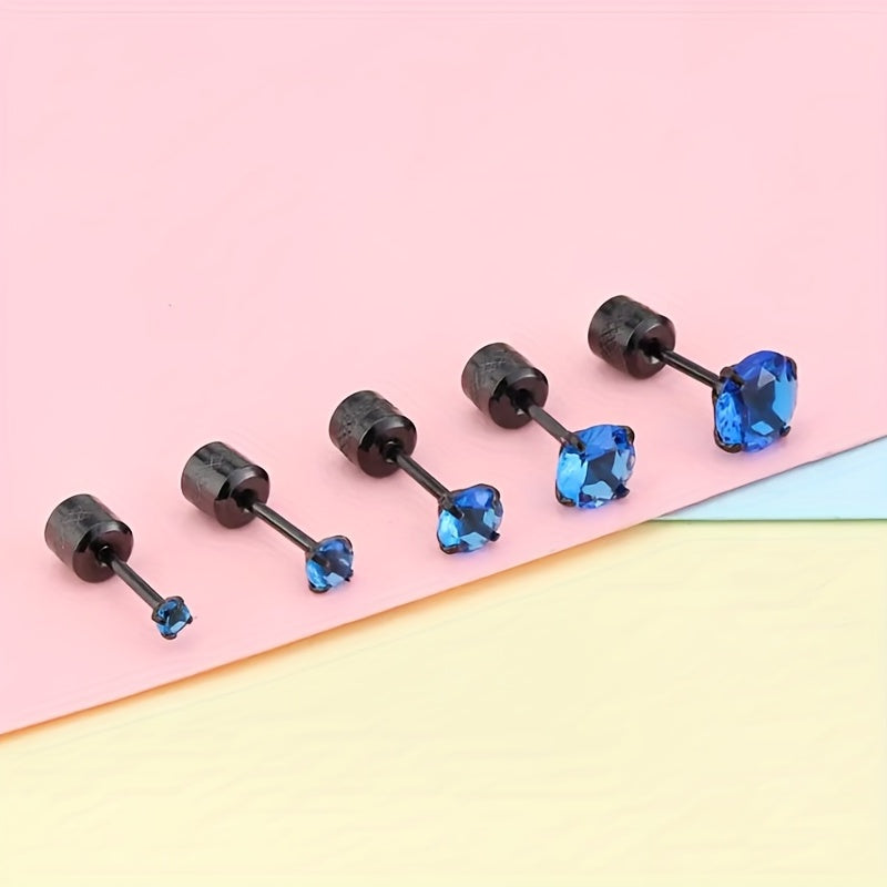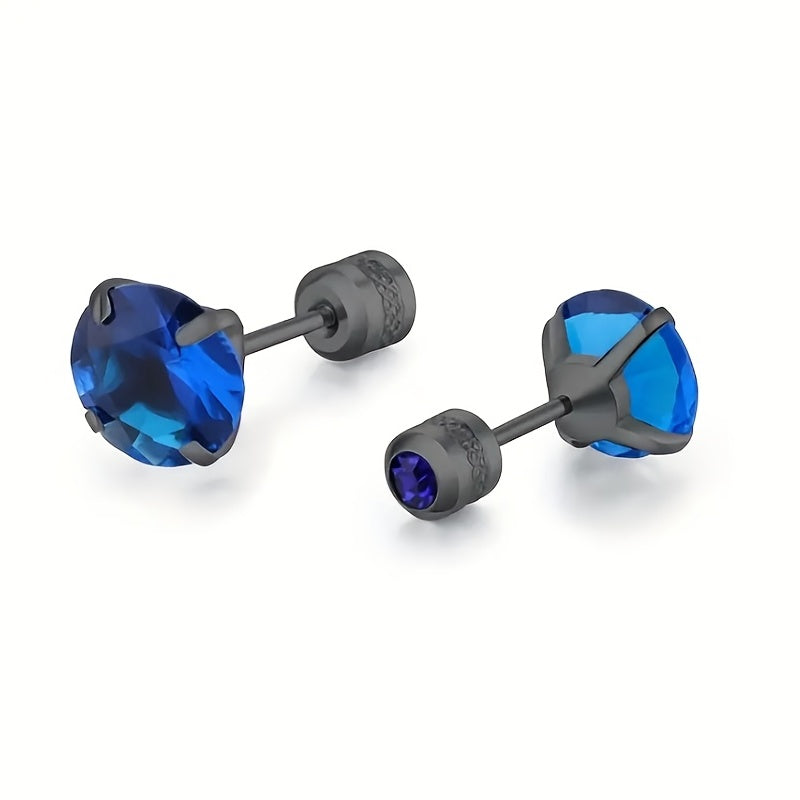 Enhance your style with these titanium steel stud earrings featuring round double faux diamond zircons.