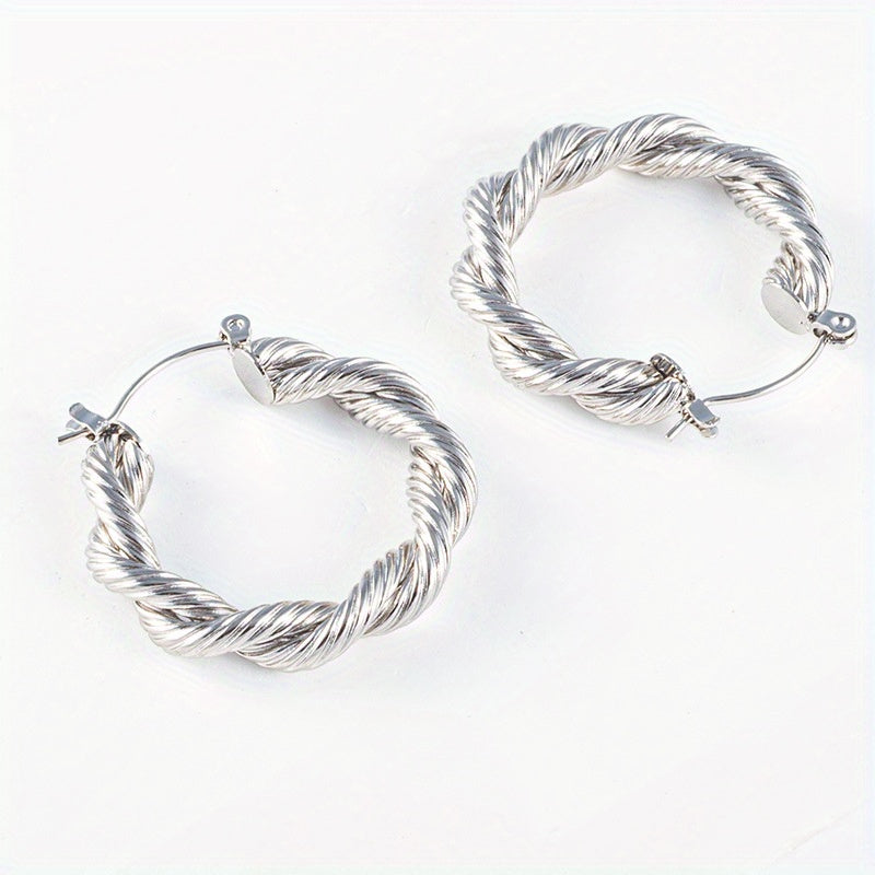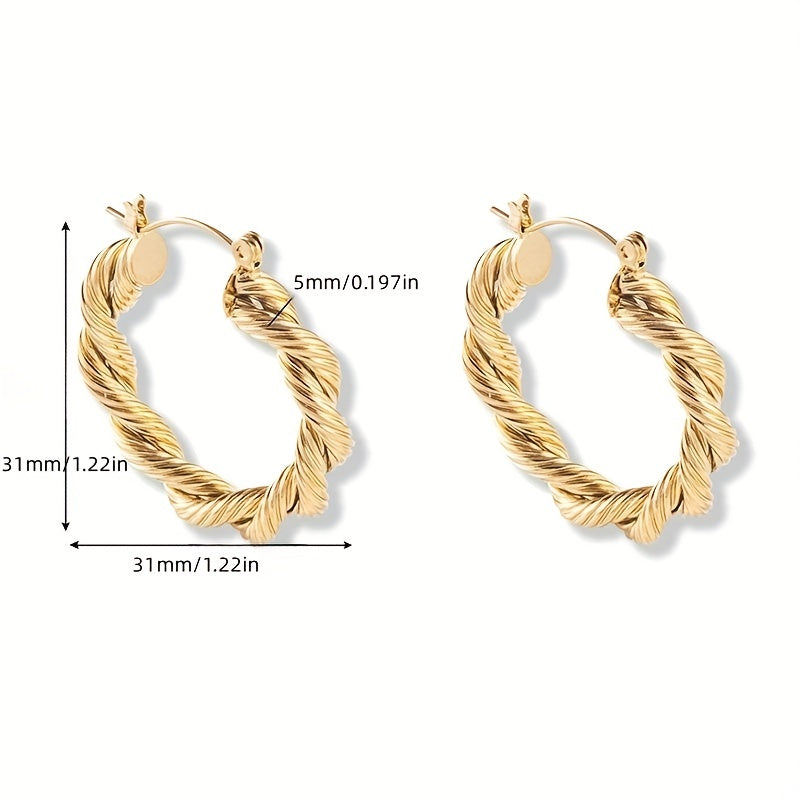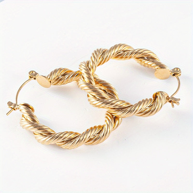 Add a touch of style to your look with these twisted hoop earrings. The vintage design is perfect for any occasion.