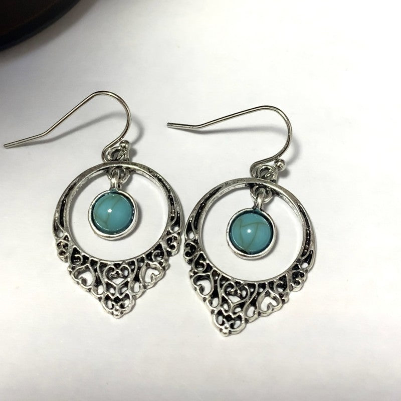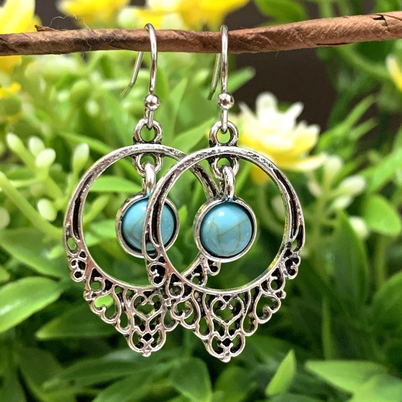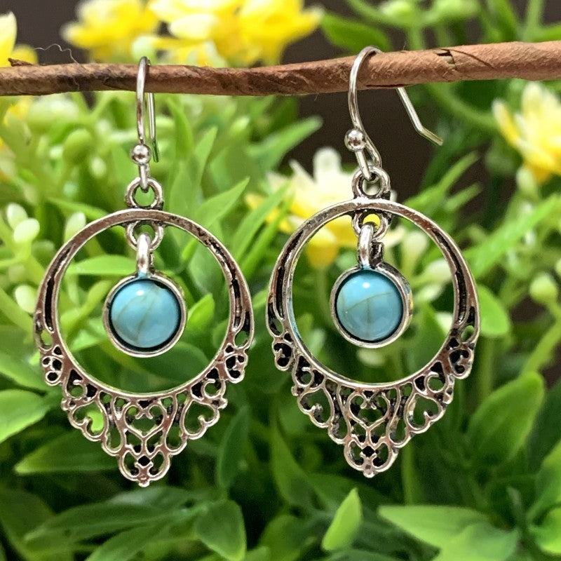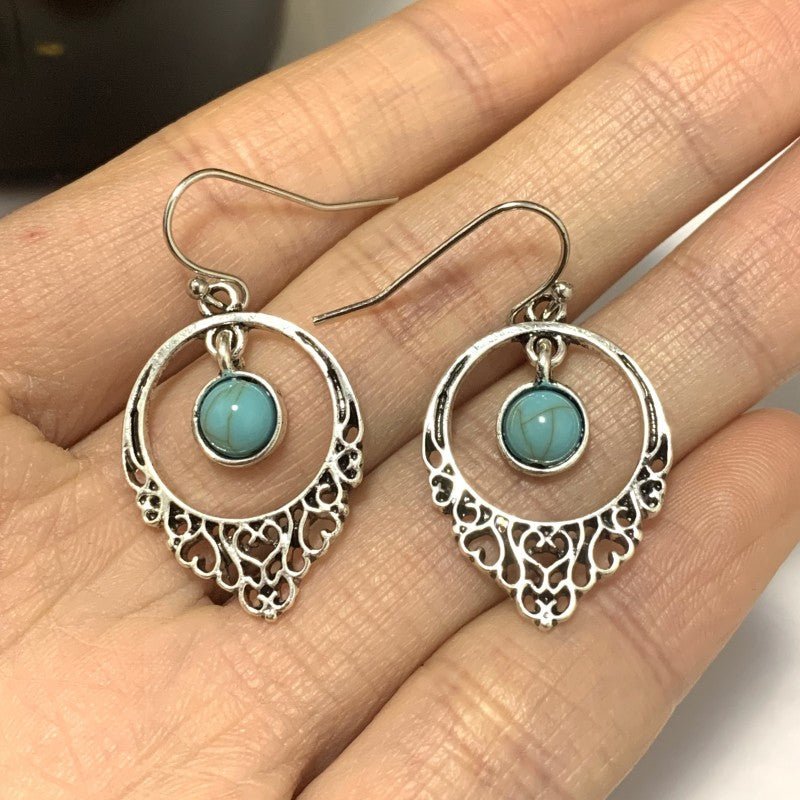 Enhance your style with these unique vintage turquoise earrings designed for both men and women. These earrings are perfect for adding a touch of sophistication to any outfit.