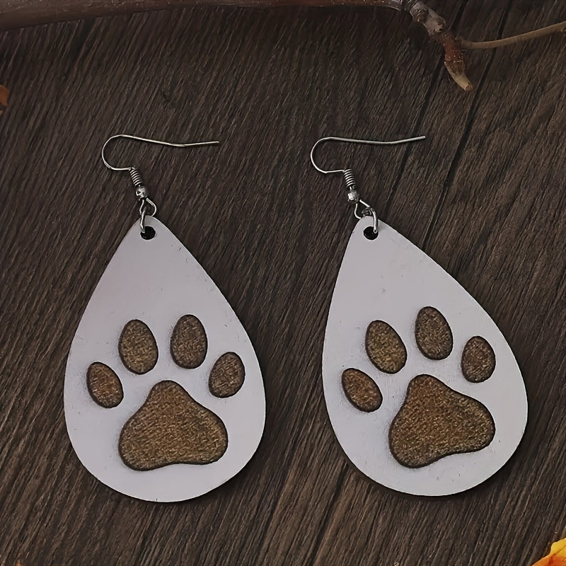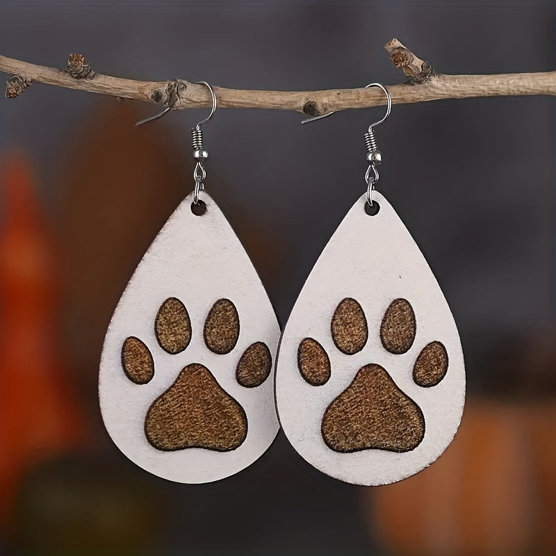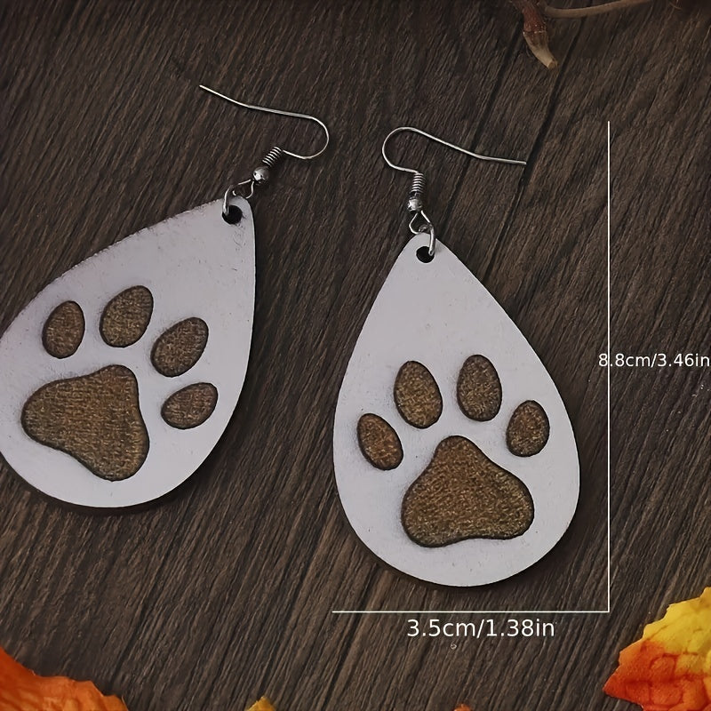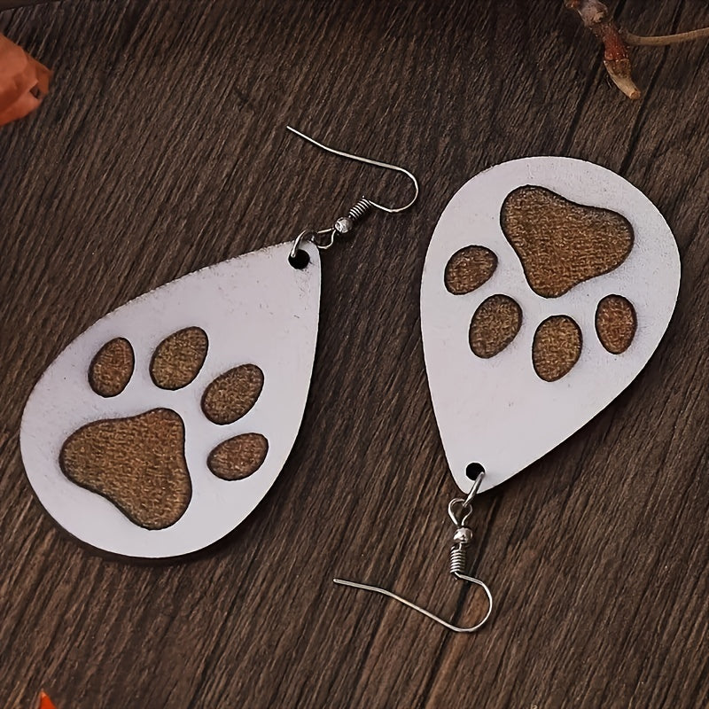 Add a touch of style to your holiday look with these unique wooden dog paw drop earrings for men.