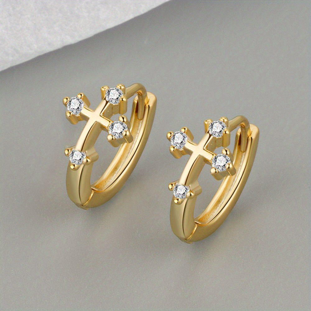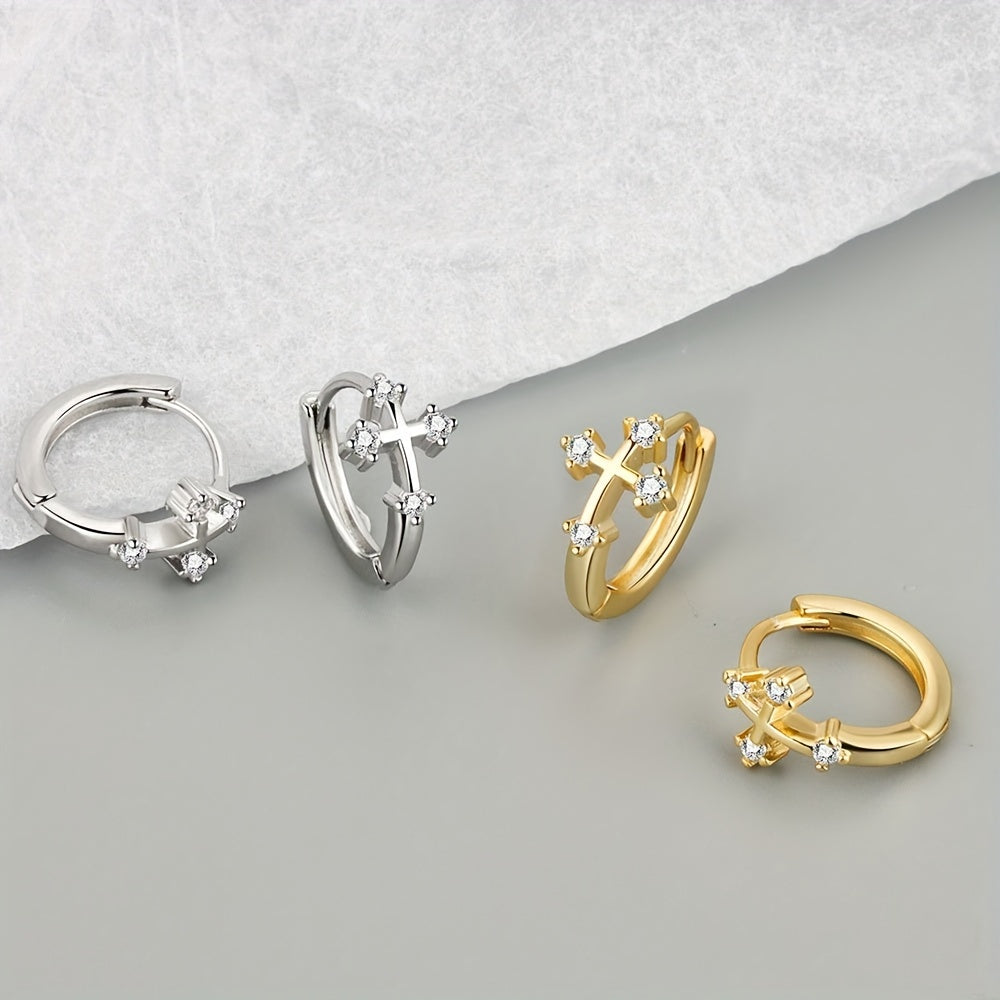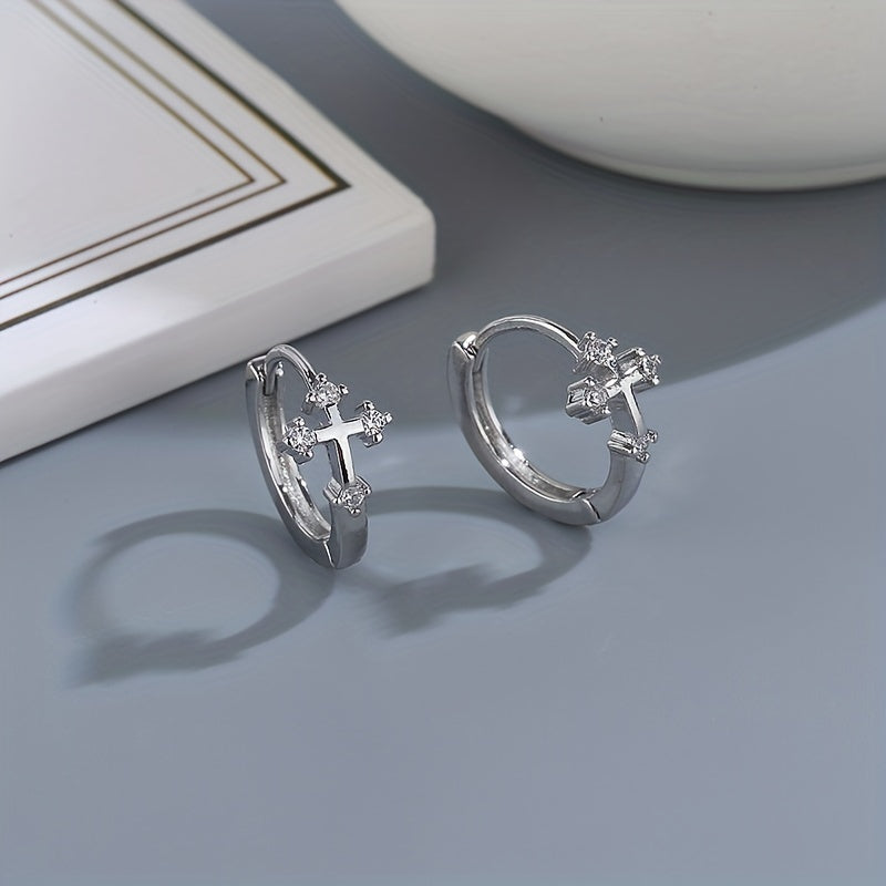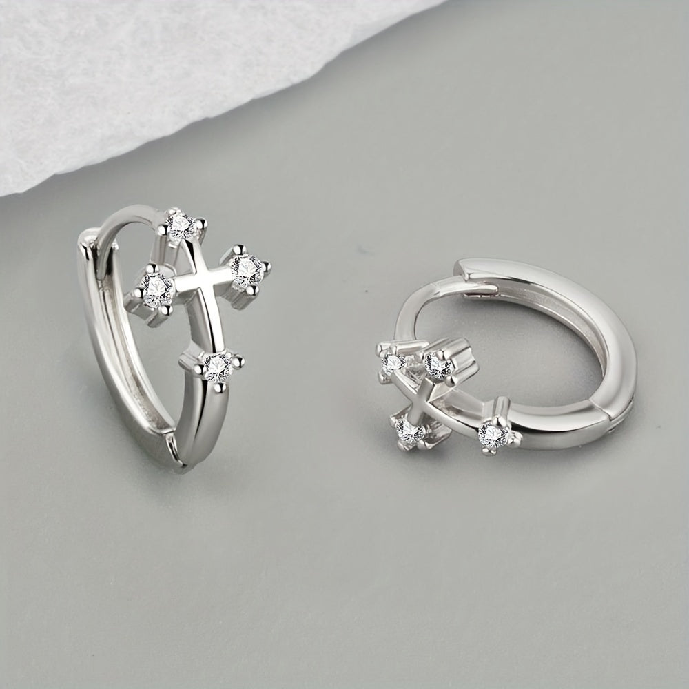 Men's Zircon Cross Hoop Earrings - Street Jewelry