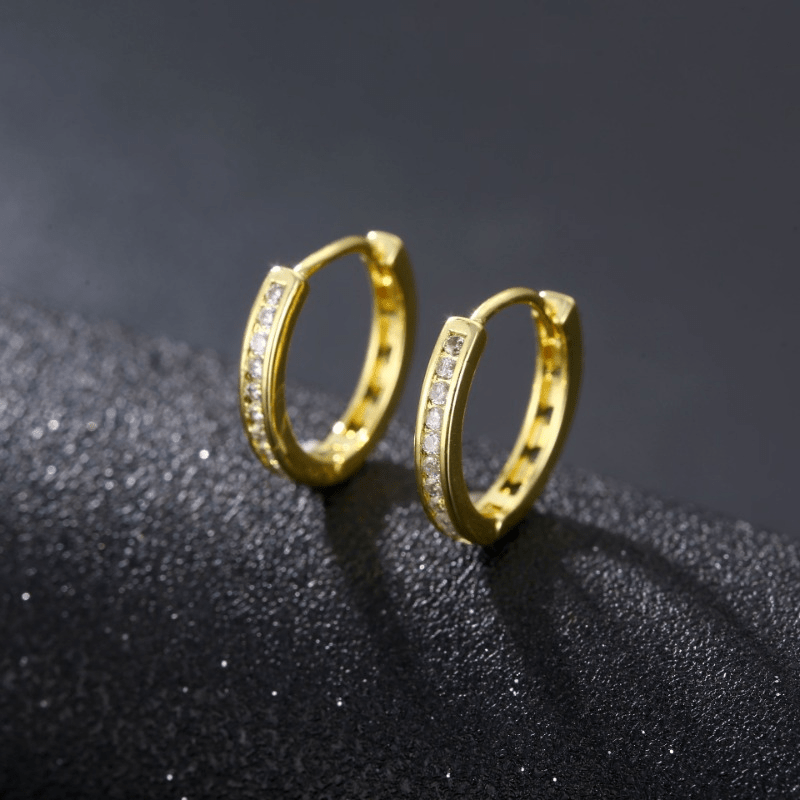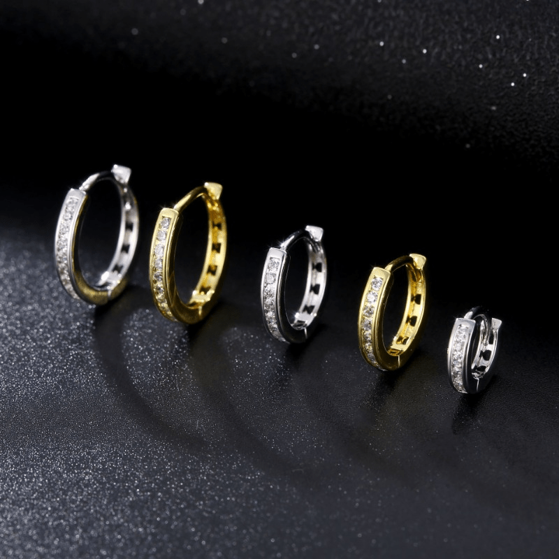 Elegant zircon ear clip earrings in silver tone, perfect for men's fashion accessory.