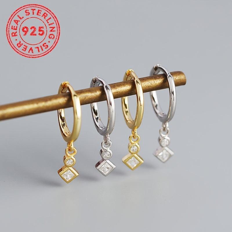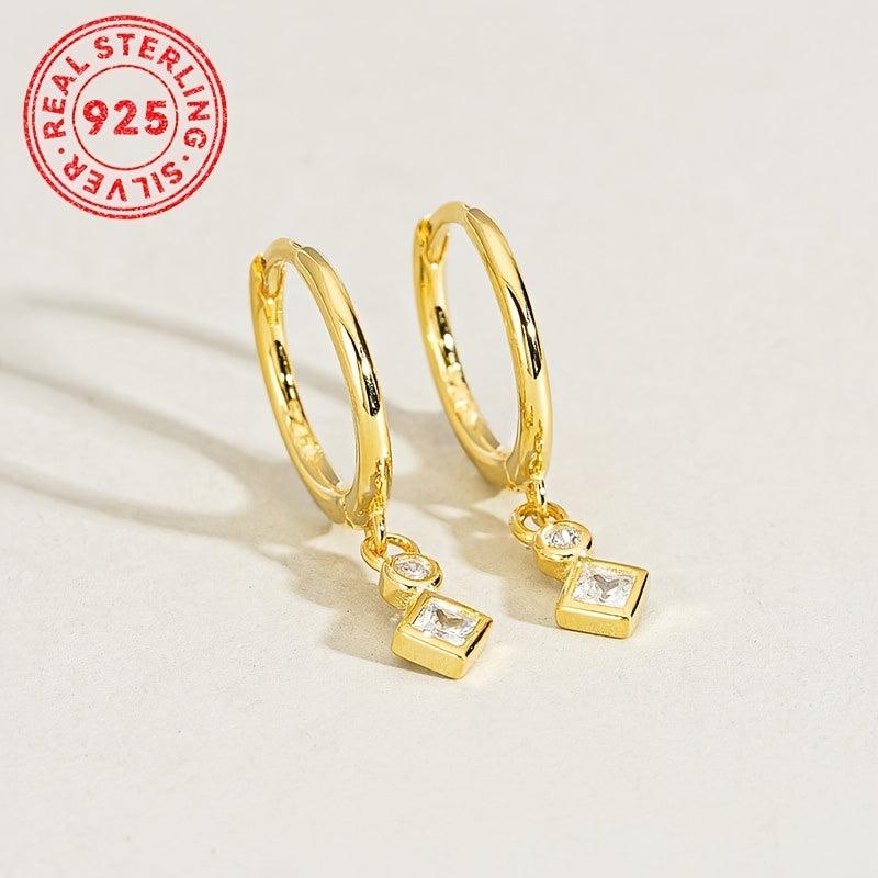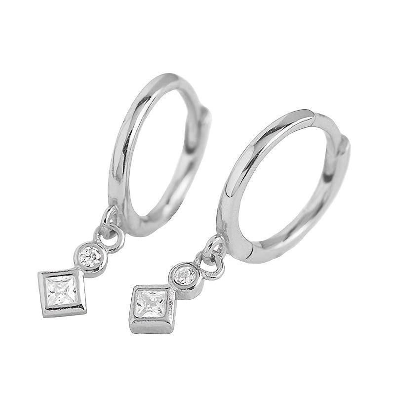 Elegant and stylish earrings designed for women with a Middle Eastern retro square motif. Made of 1.6 grams of 925 silver and adorned with Synthetic Zirconia. Perfect for daily wear and special occasions.