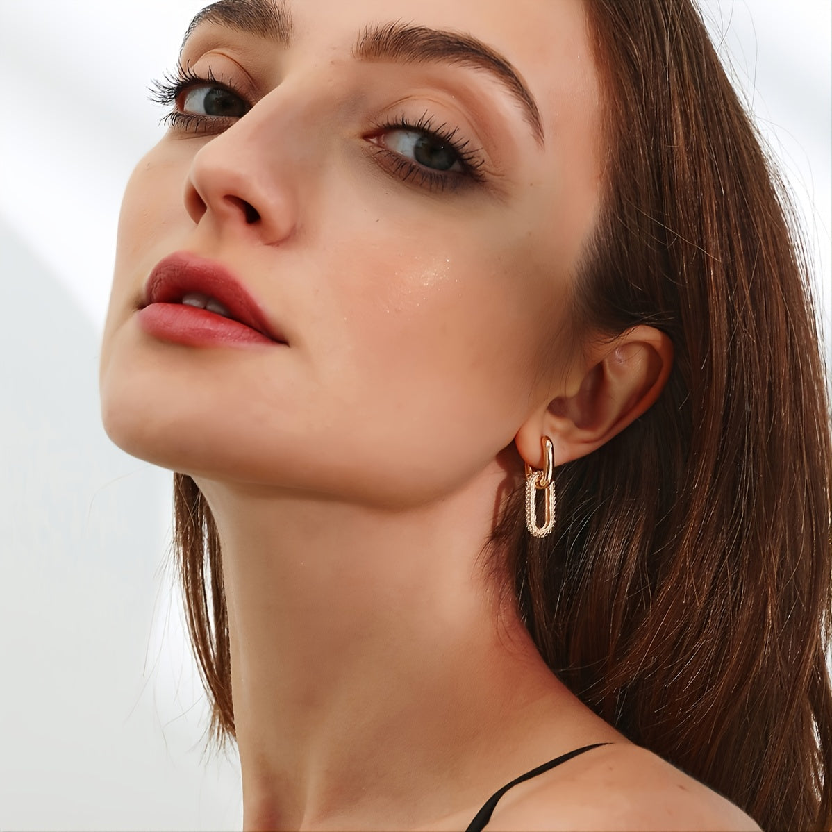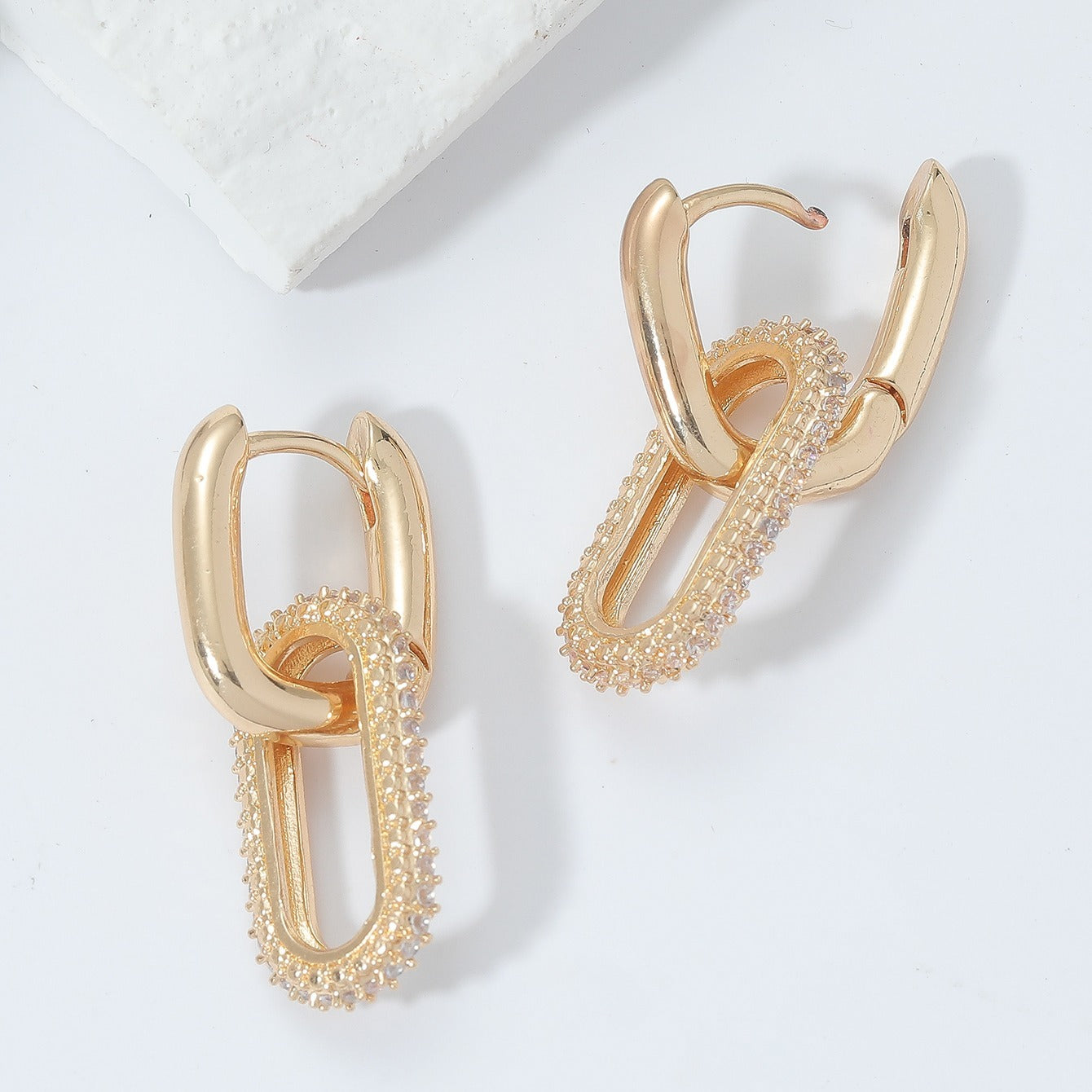 Elegant oval-shaped earrings with crystal zircons. These versatile earrings can be worn in 2 ways.