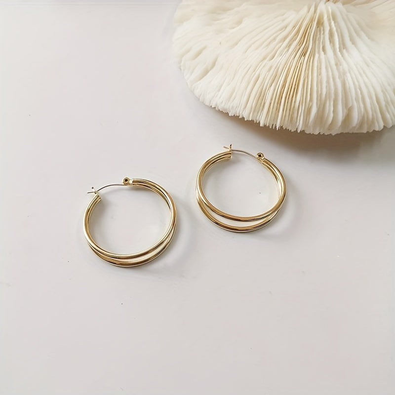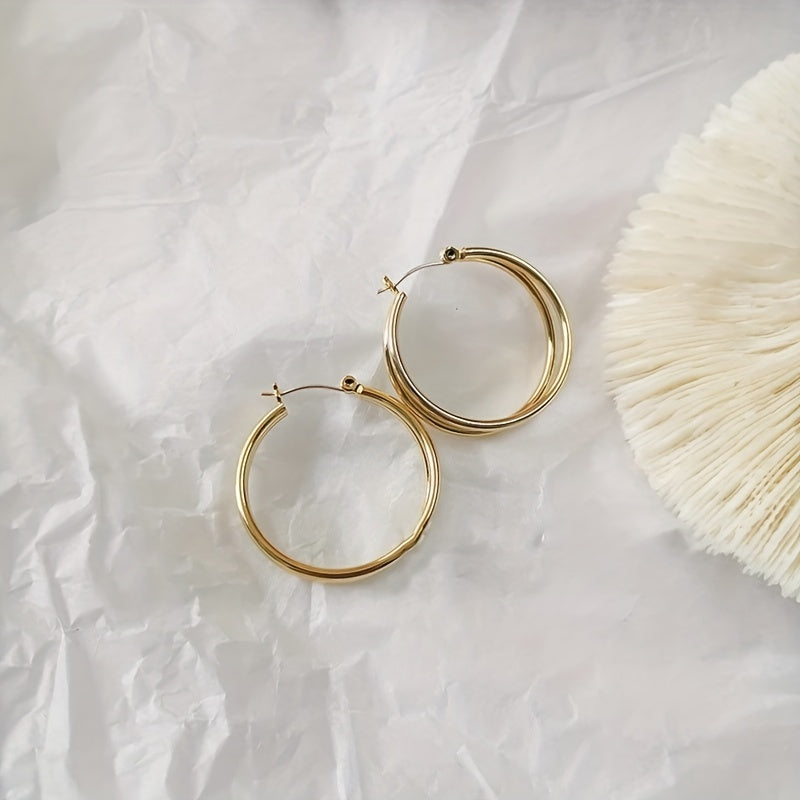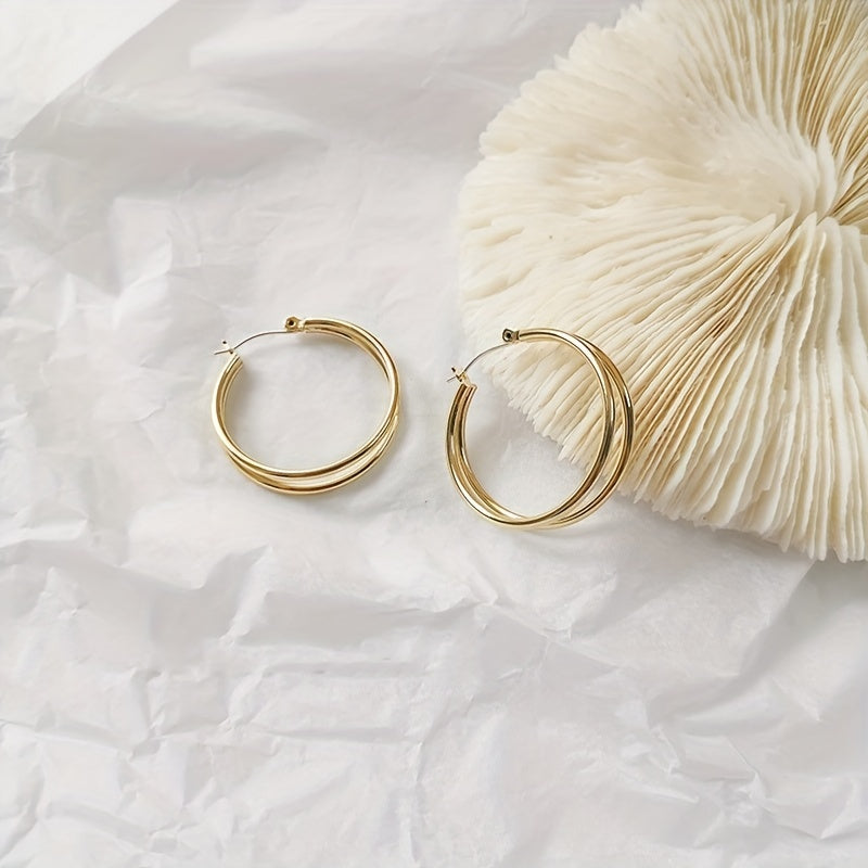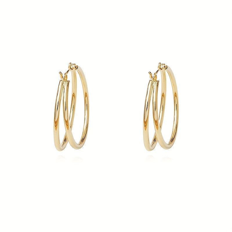 These elegant double-layer loop earrings are plated with 14K gold, making them a perfect accessory for any outfit. Give them as a gift to a loved one or treat yourself to a touch of luxury.