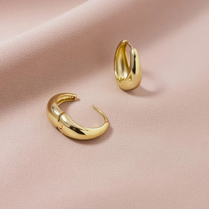 Enhance your everyday look with these minimalist golden hoop earrings crafted from copper and plated with 14K gold. Perfect for daily wear, these earrings add a touch of elegance to any outfit.