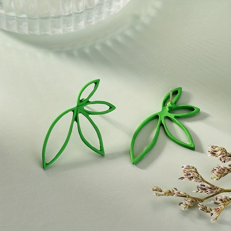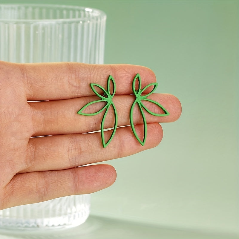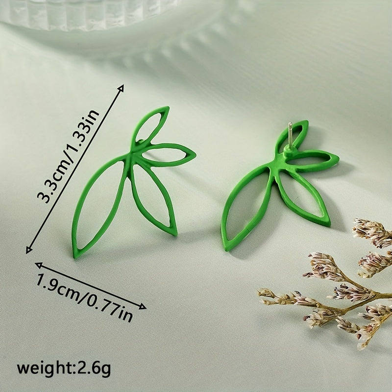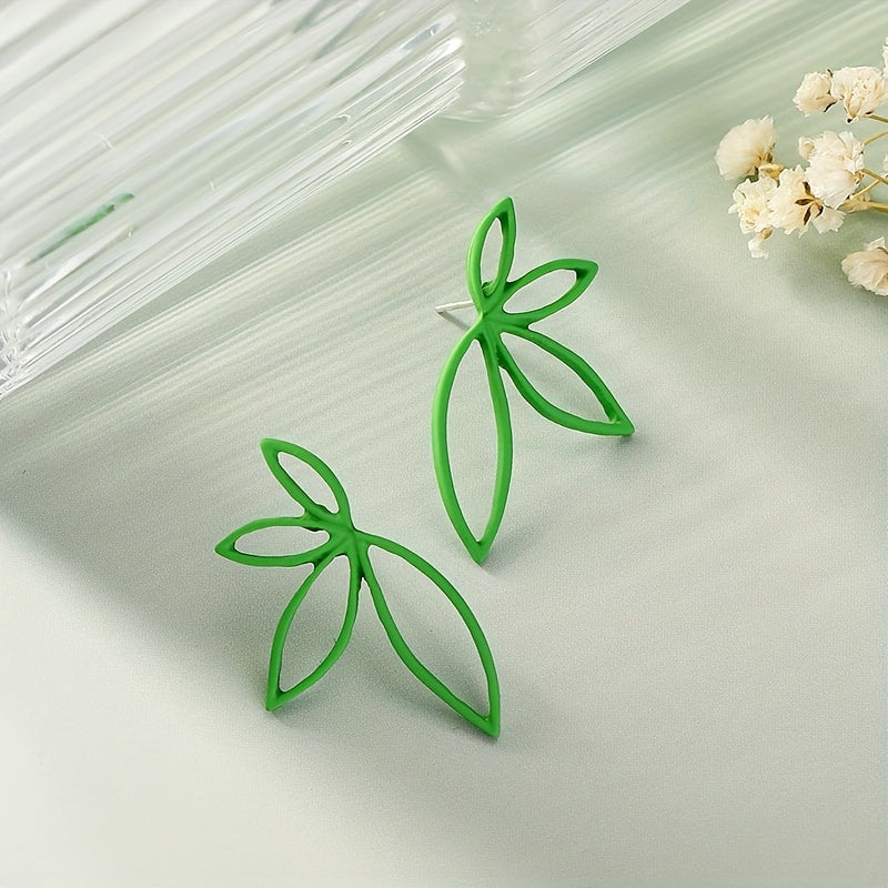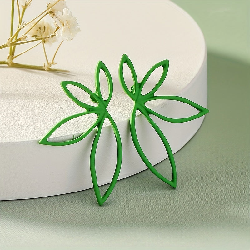 Enhance your style with these minimalist green flower stud earrings made of zinc alloy with 14K plating. Perfect for travel or daily wear.