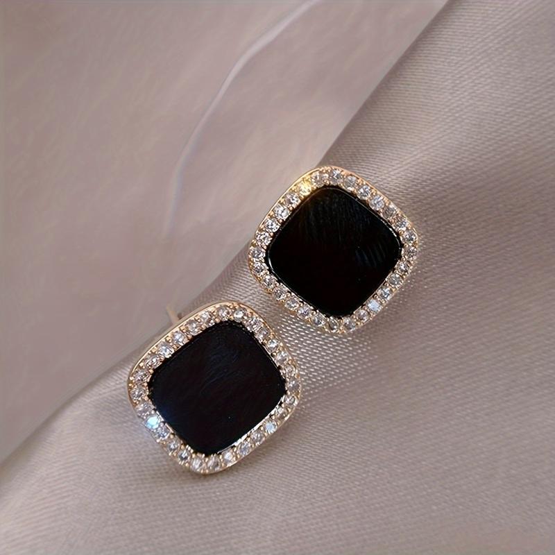 Elegant and stylish square stud earrings with rhinestone decoration, perfect for banquet and holiday occasions.