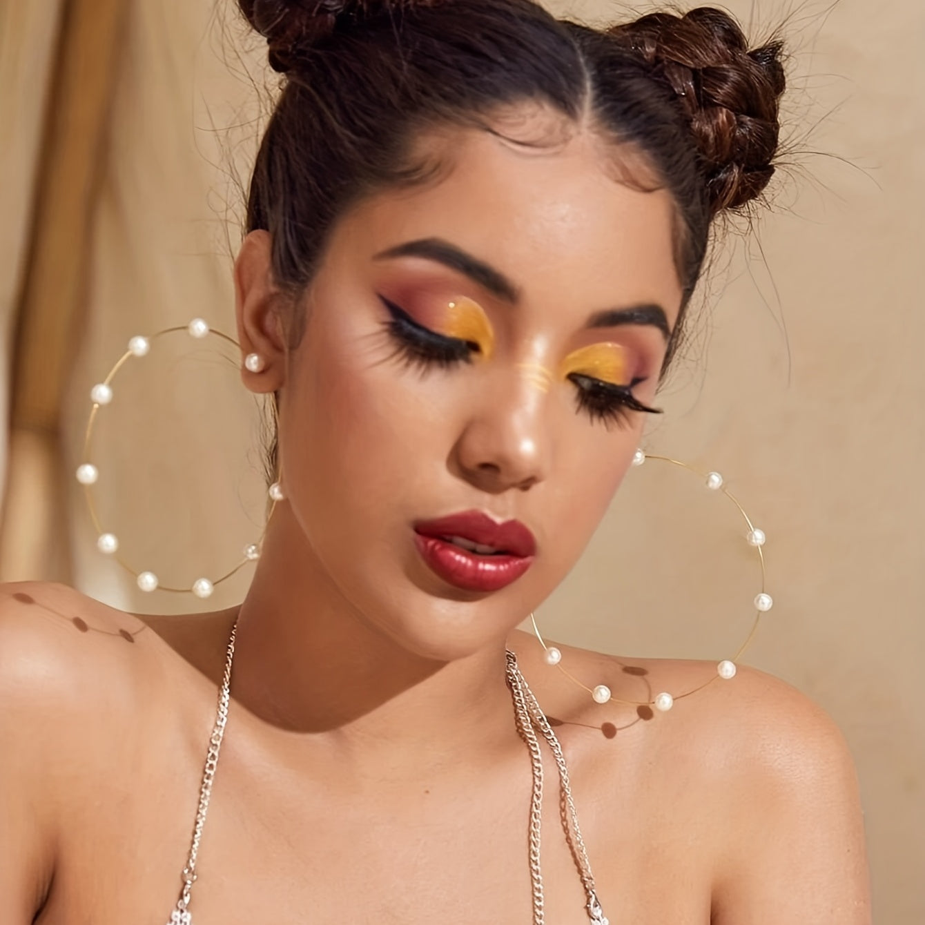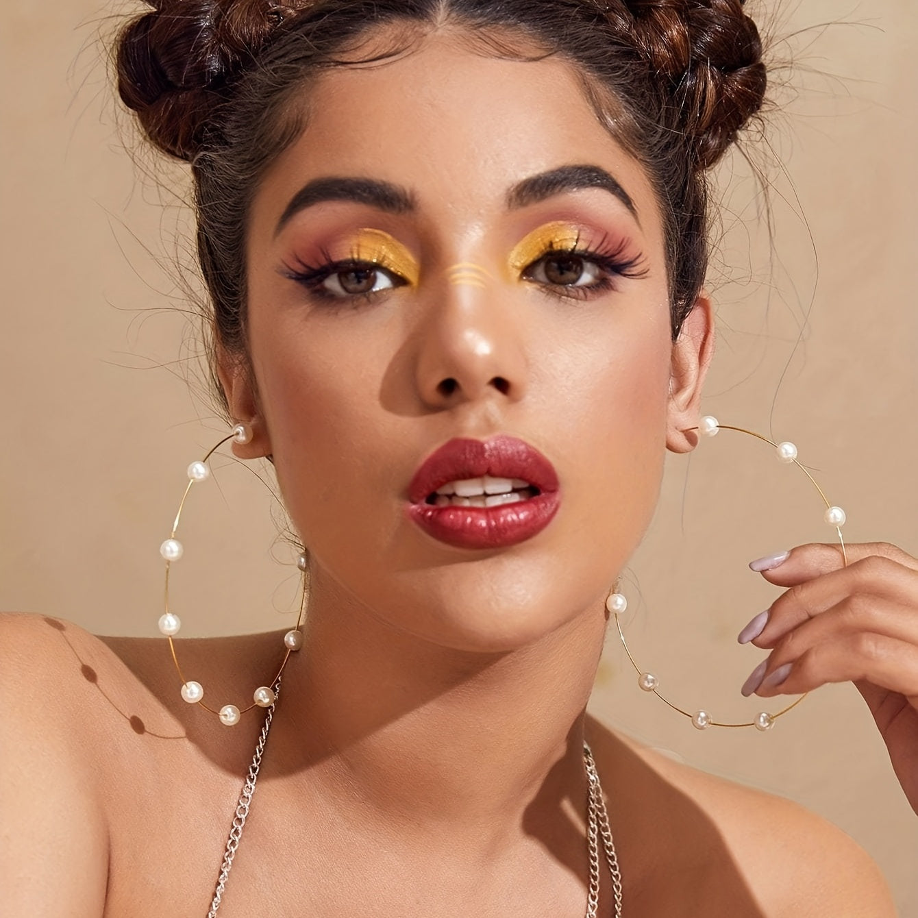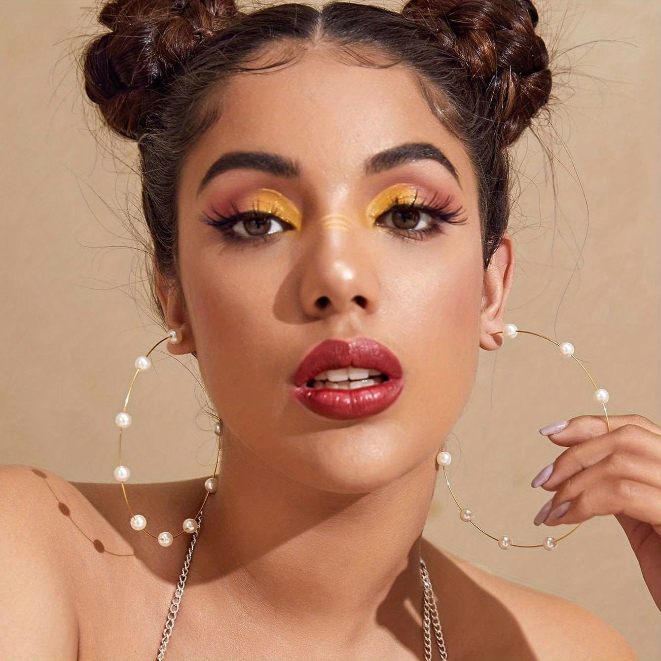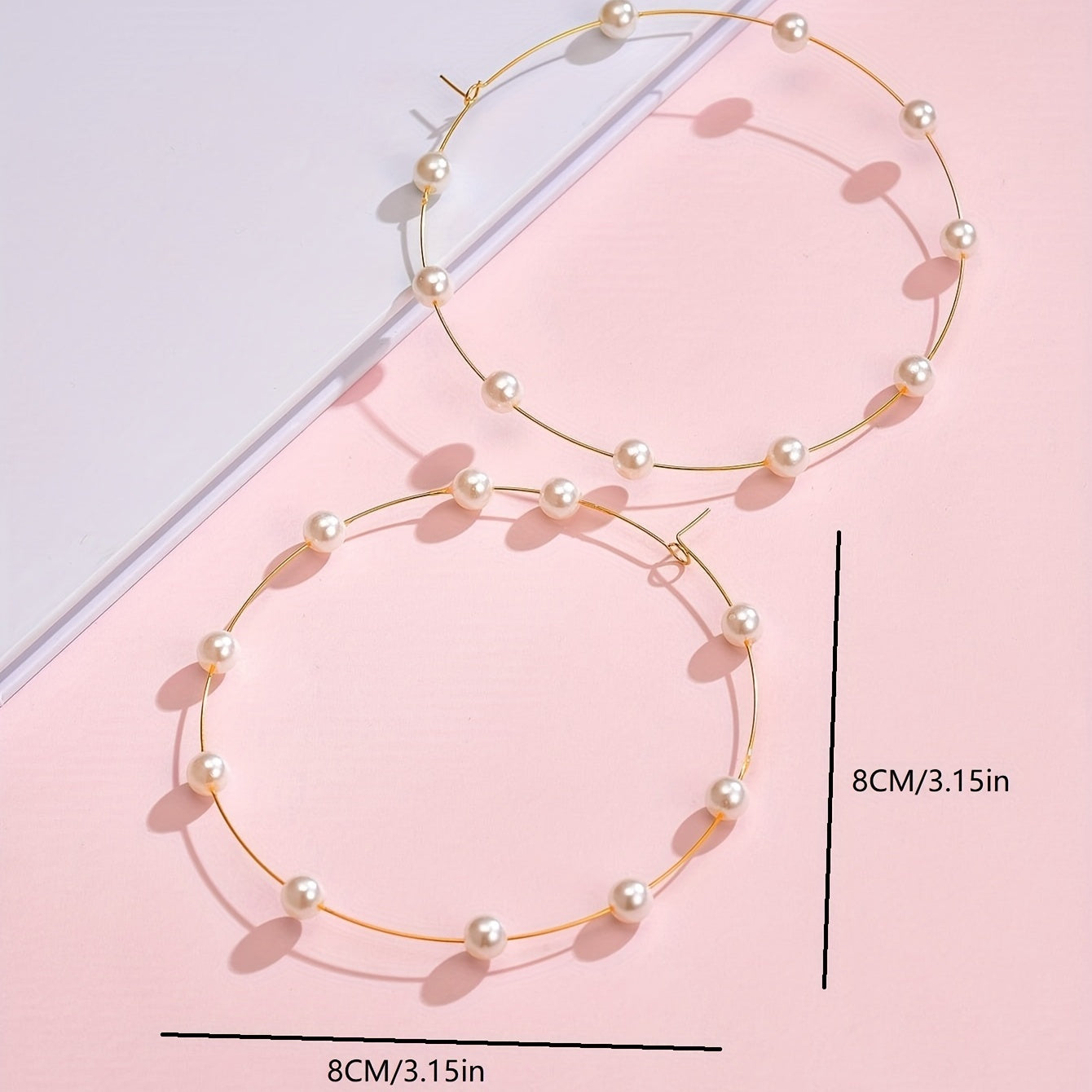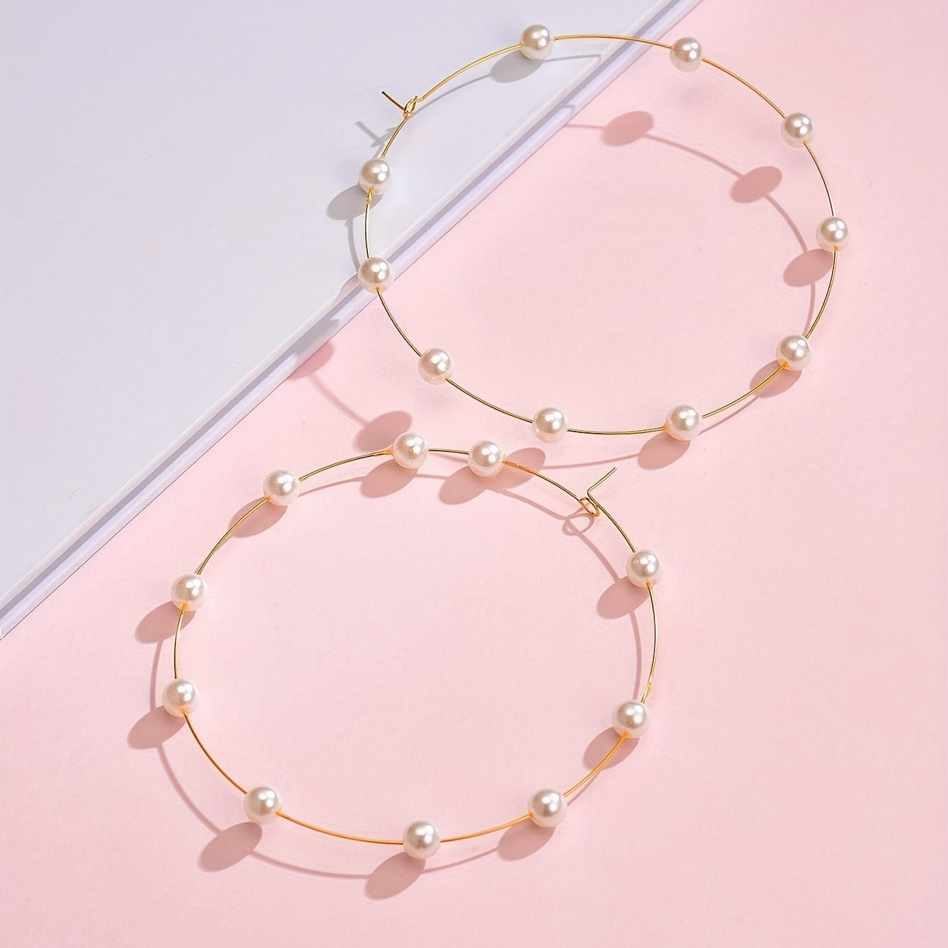 Add a touch of elegance to your outfit with these minimalist hoop earrings. Featuring faux pearl decoration, these exaggerated earrings are perfect for adding a statement to your look.