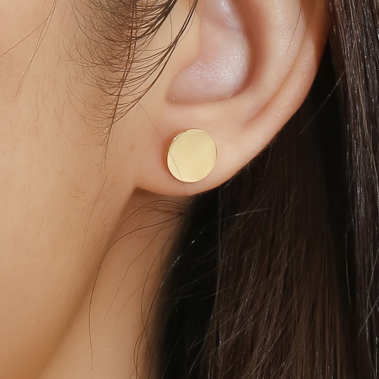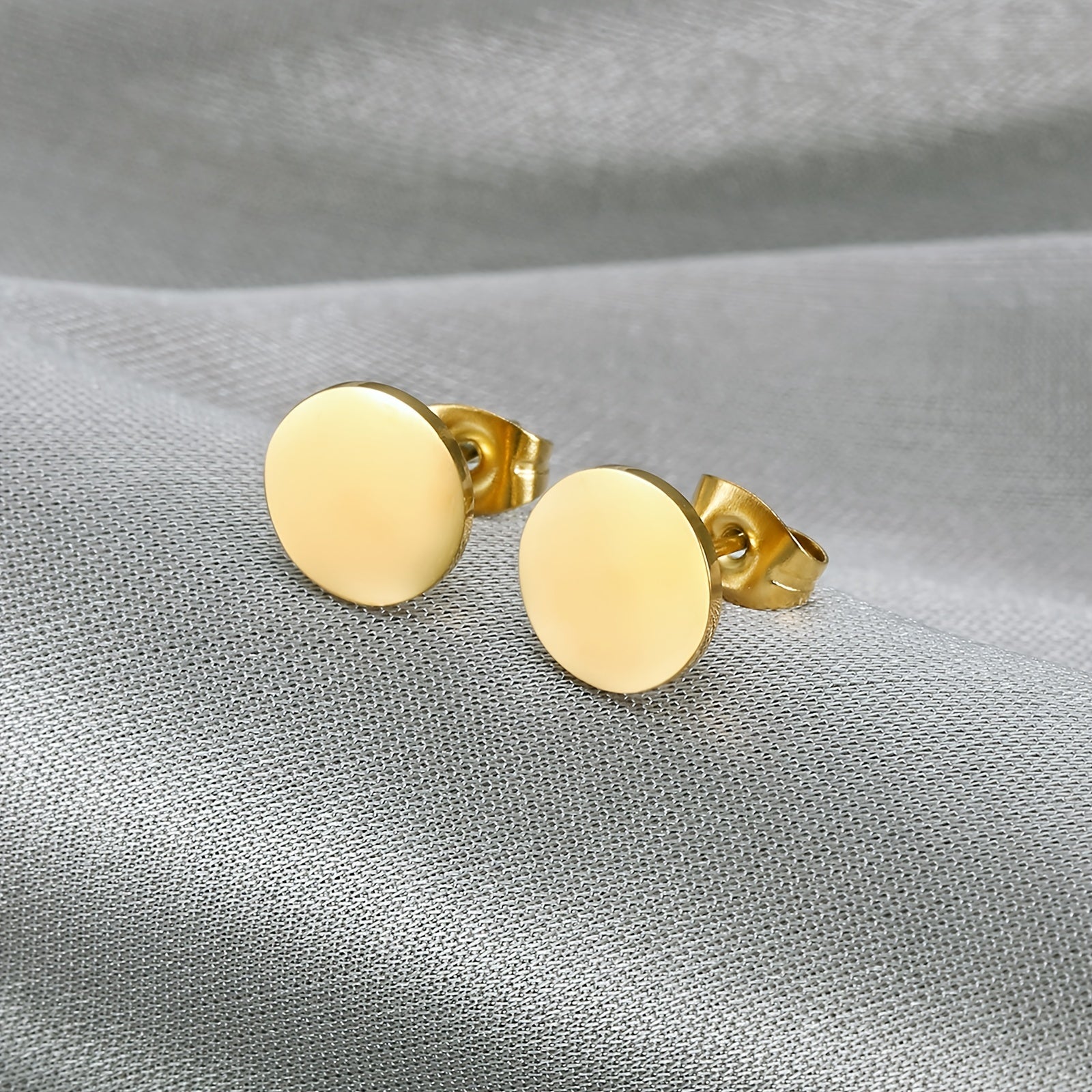 These elegant round stud earrings are perfect for parties and can be dressed up or down. Made with high-quality stainless steel and 18K plating, they add a touch of sophistication to any outfit.