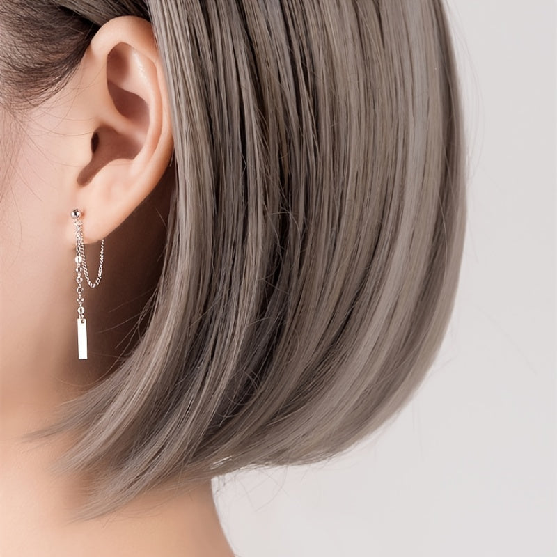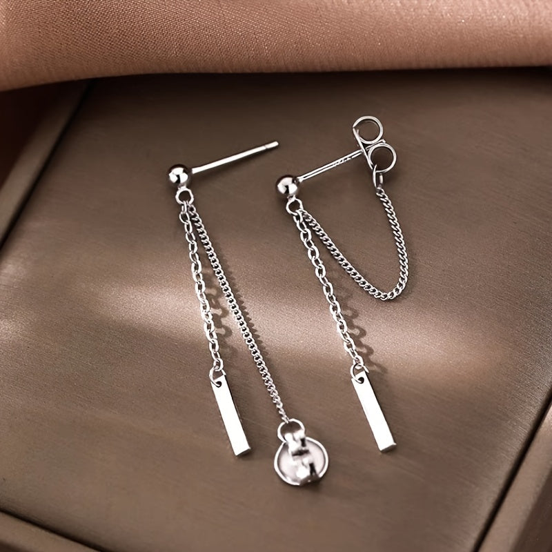 Elevate your style with these chic geometric vertical bar threader earrings. Crafted from sterling silver, these dangle wire earrings add a touch of elegance to any outfit.