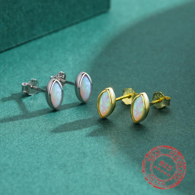 Chic and stylish sterling silver earrings with rhombus lab opal design. Ideal for everyday wear and special occasions, hypoallergenic and trendy accessory.