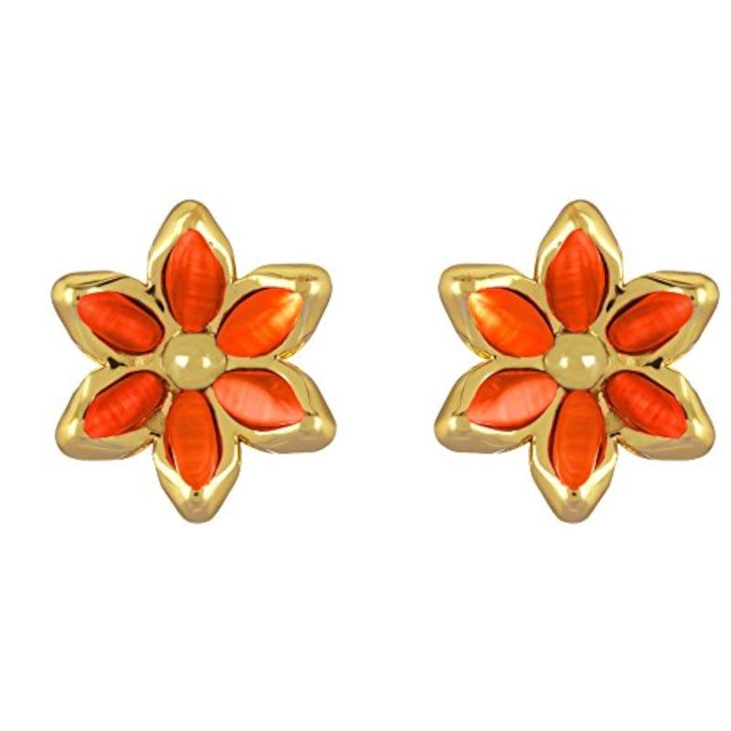 Elegant earrings featuring Monalisa Cats Eye stones in a floral design with gold plating.