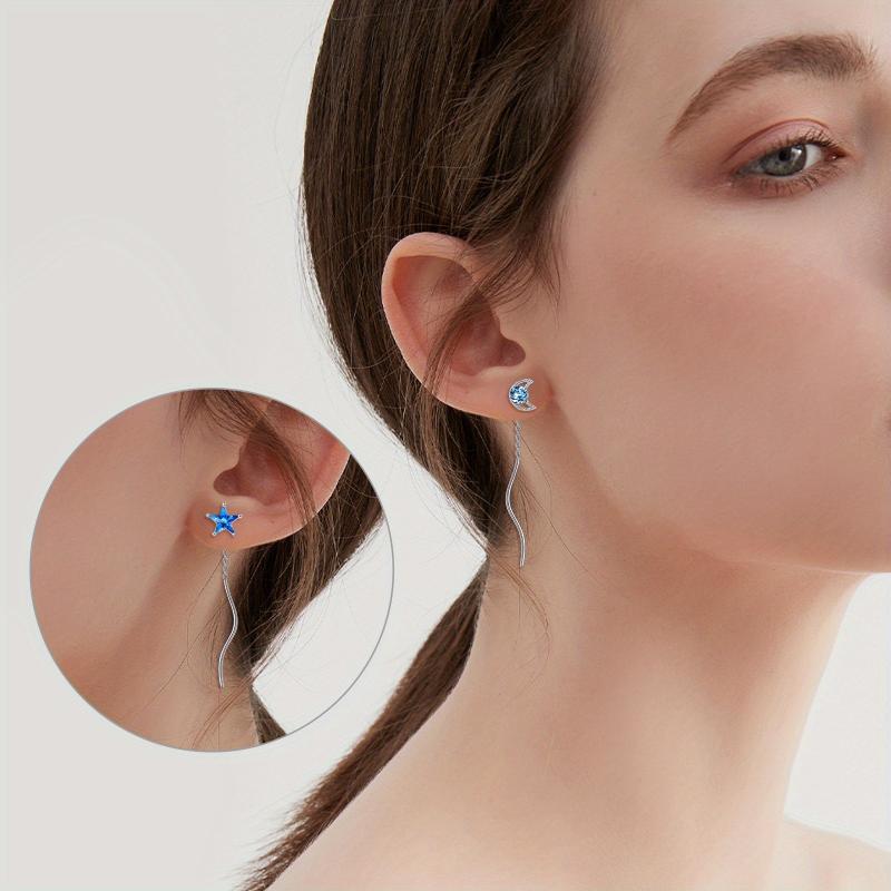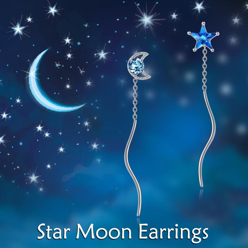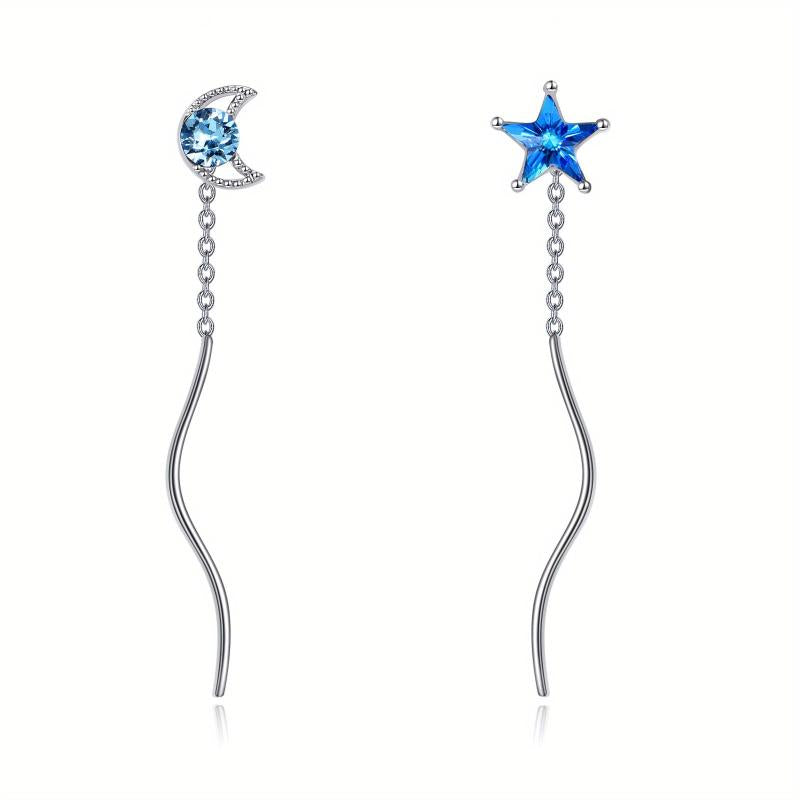 Elegant moon and star threader earrings made of 925 sterling silver. These droplet chain earrings are perfect for women and girls.