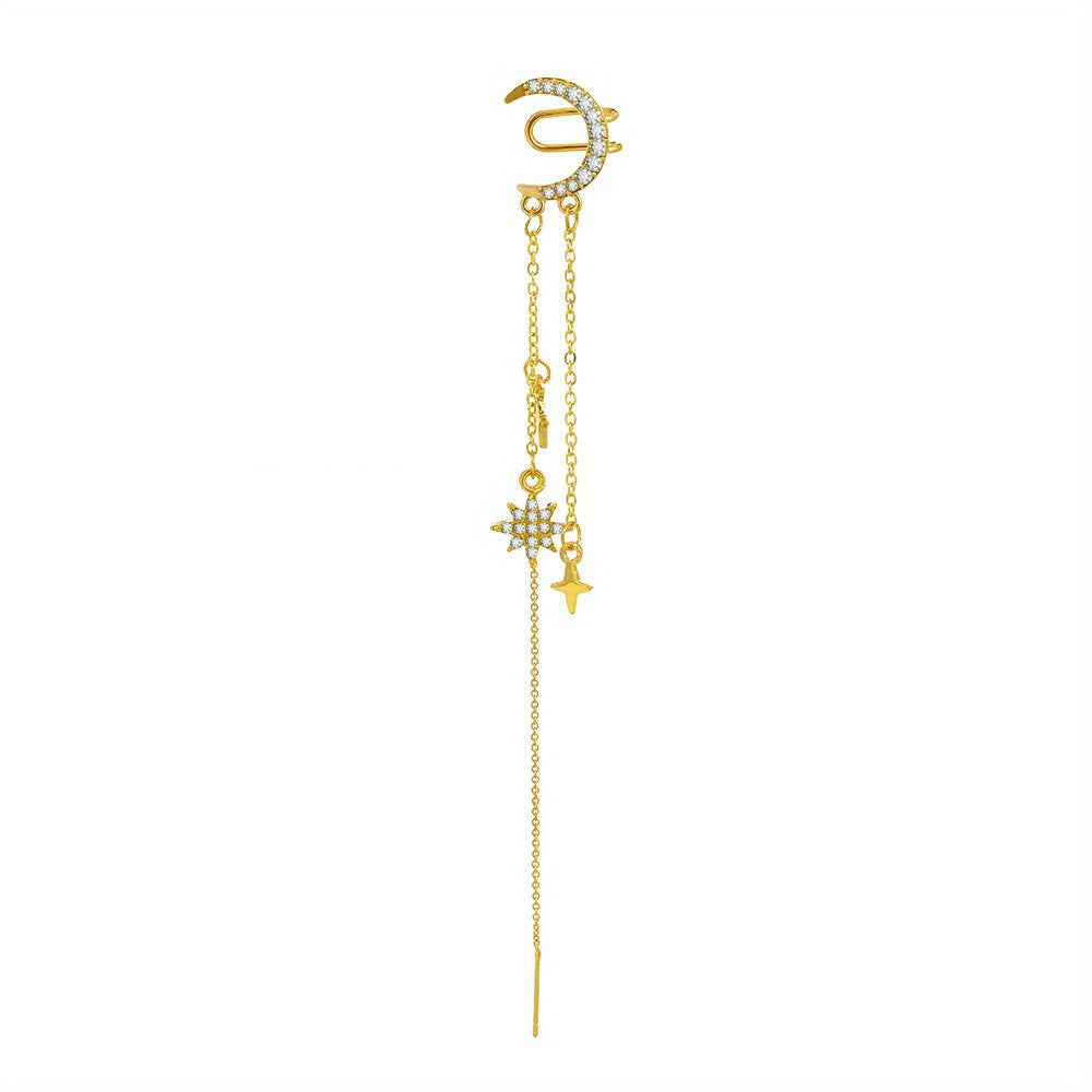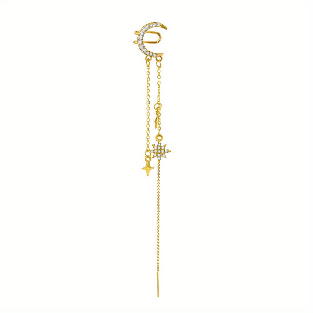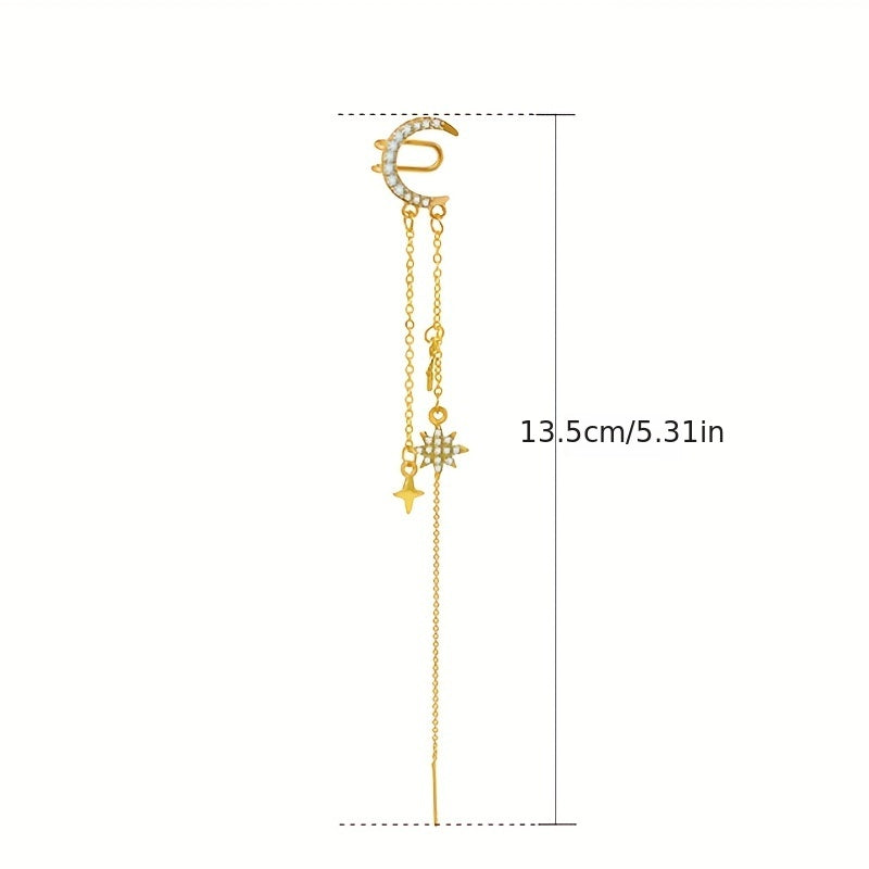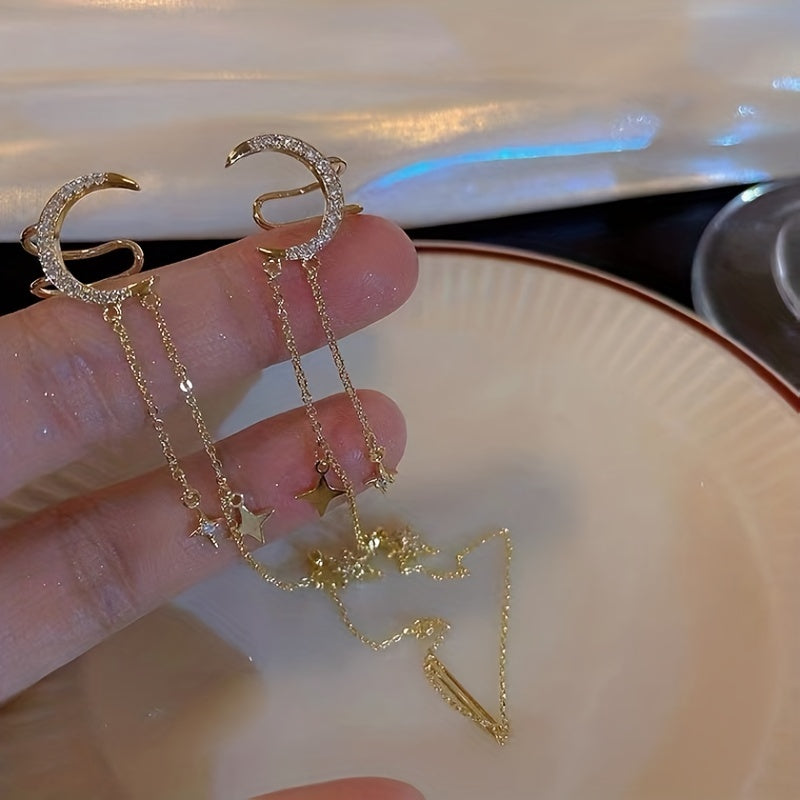 Elegant moon star tassel earrings with a touch of Japanese style crafted in alloy and 14K plated for a creative female gift.