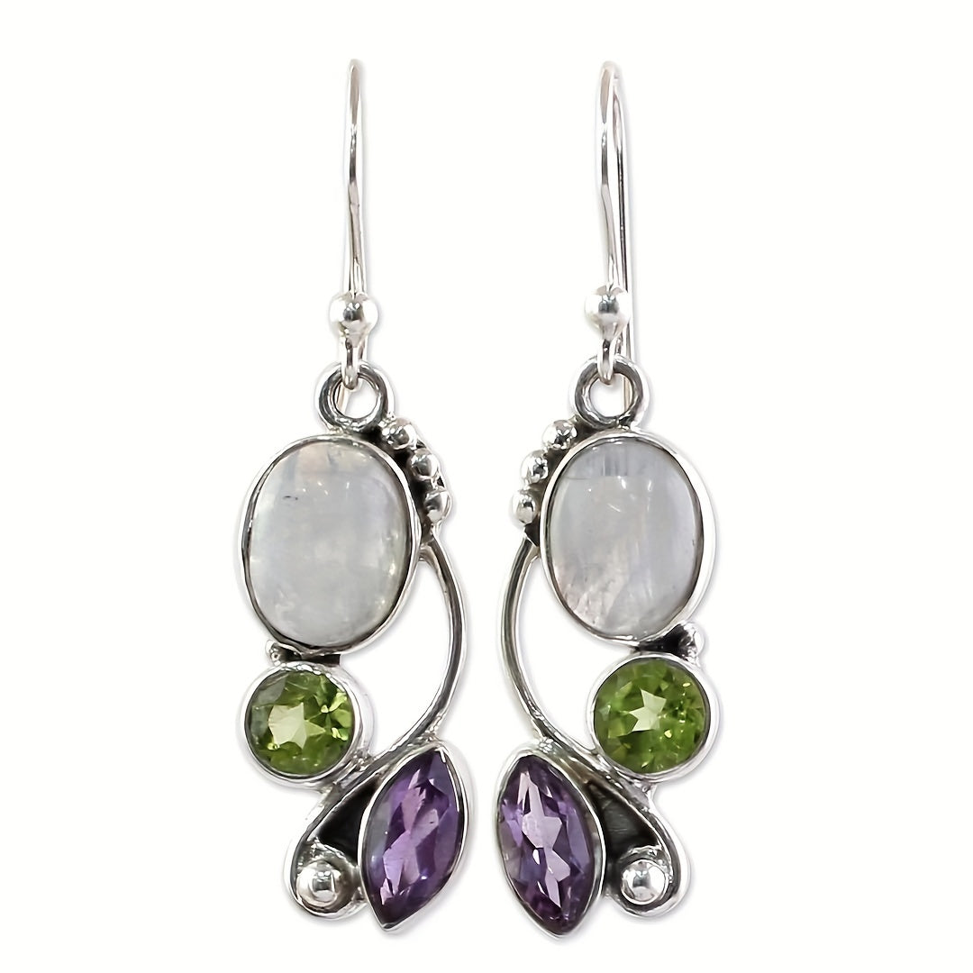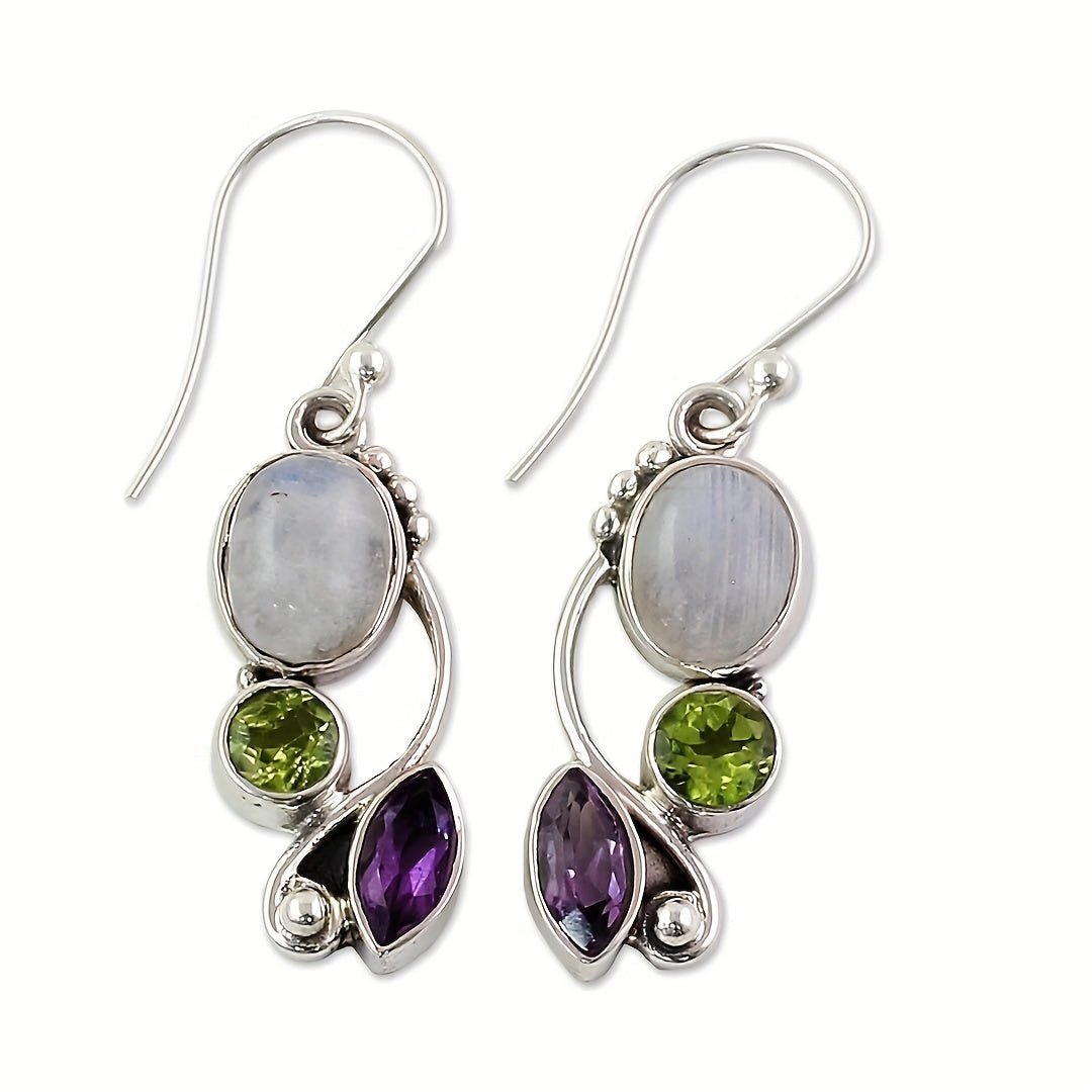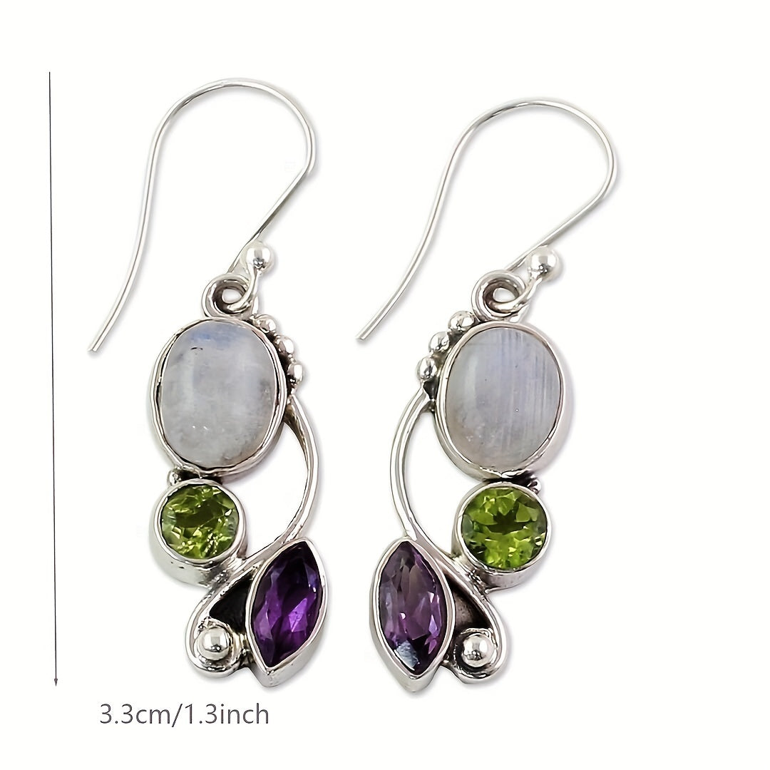 Add a touch of elegance to your look with these stunning Moonstone drop earrings featuring multicolor zircon accents. Perfect for men who appreciate unique jewelry pieces.