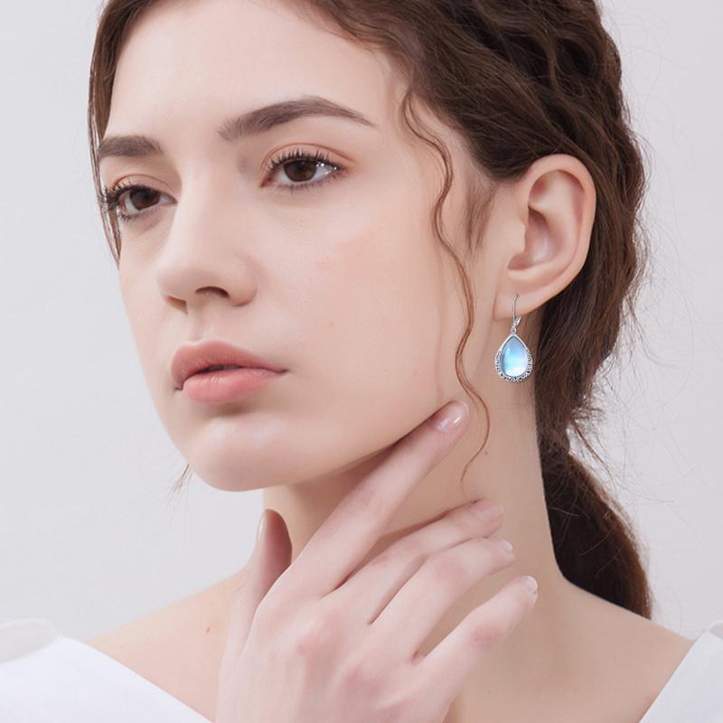 These stunning 925 sterling silver earrings are adorned with beautiful moonstones, making them the perfect birthday gift for women.