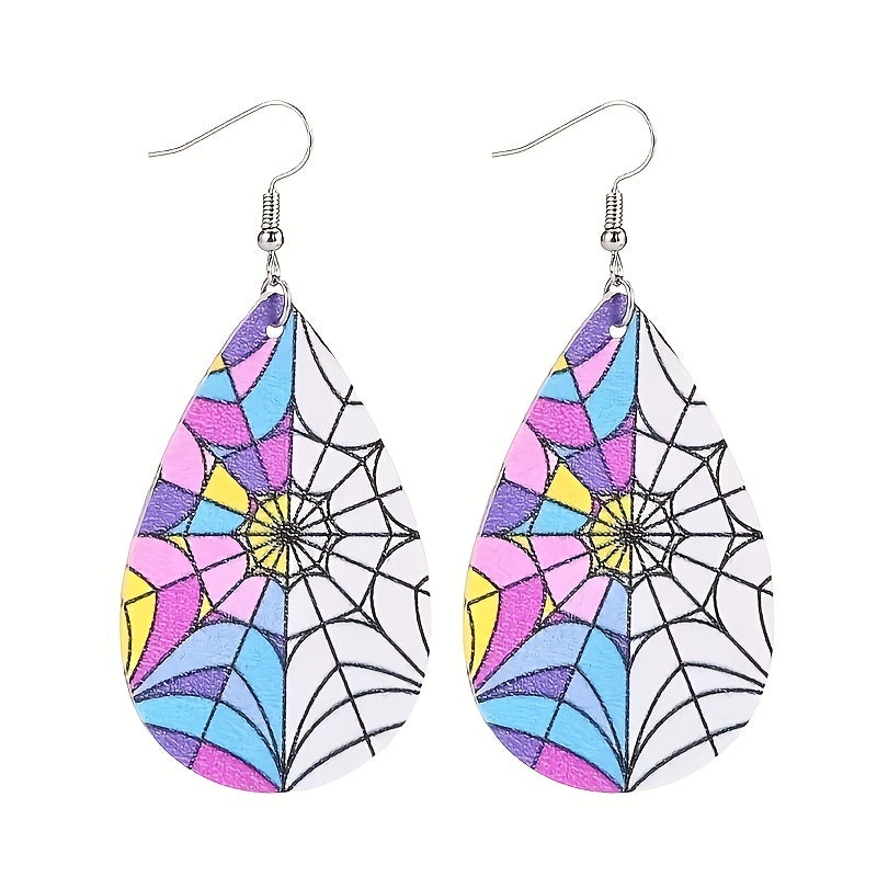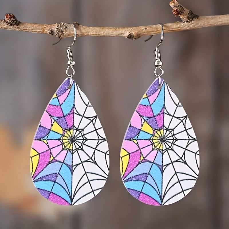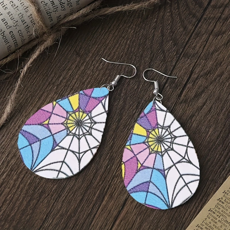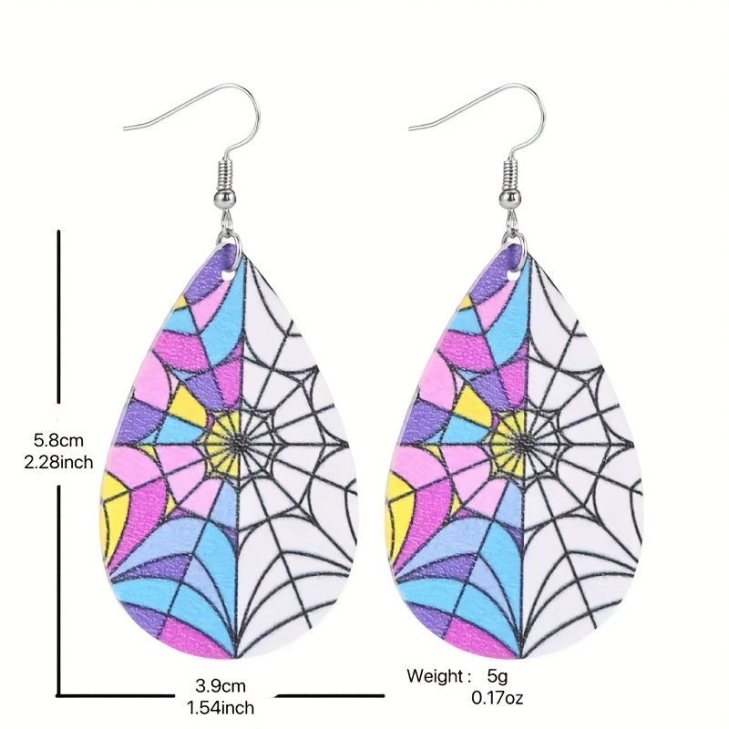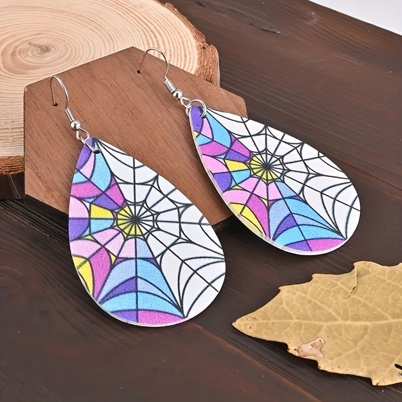 Make a bold statement with these unique leather earrings featuring a spider web pattern. Perfect for parties and events.