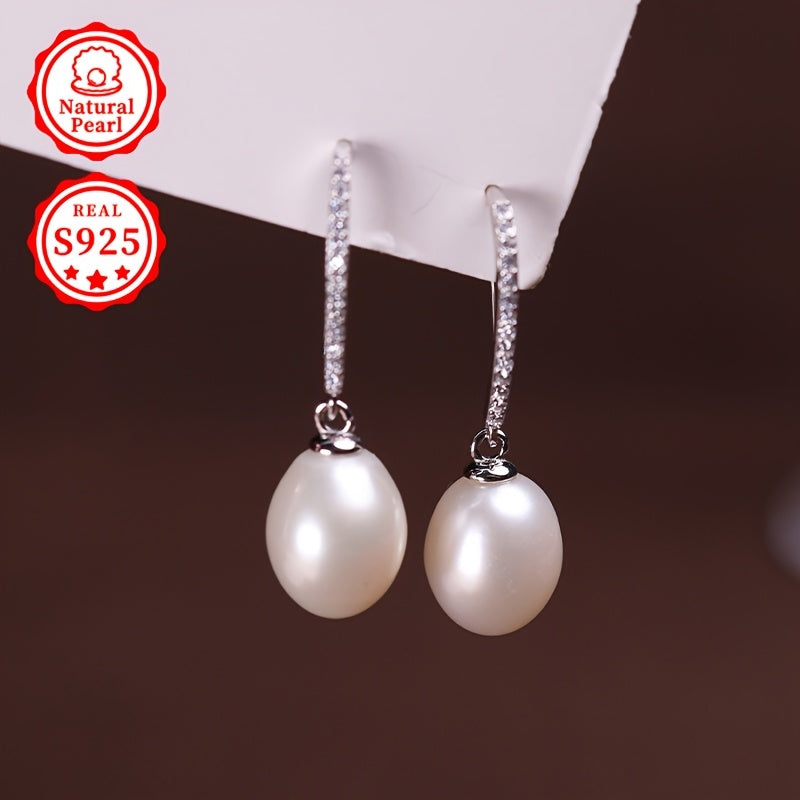 Add a touch of elegance to any outfit with these stunning freshwater pearl dangle earrings. Crafted from S925 silver and featuring water drop-shaped natural pearls, these earrings are a must-have for any jewelry collection.