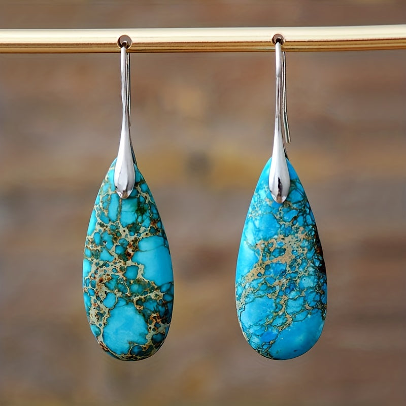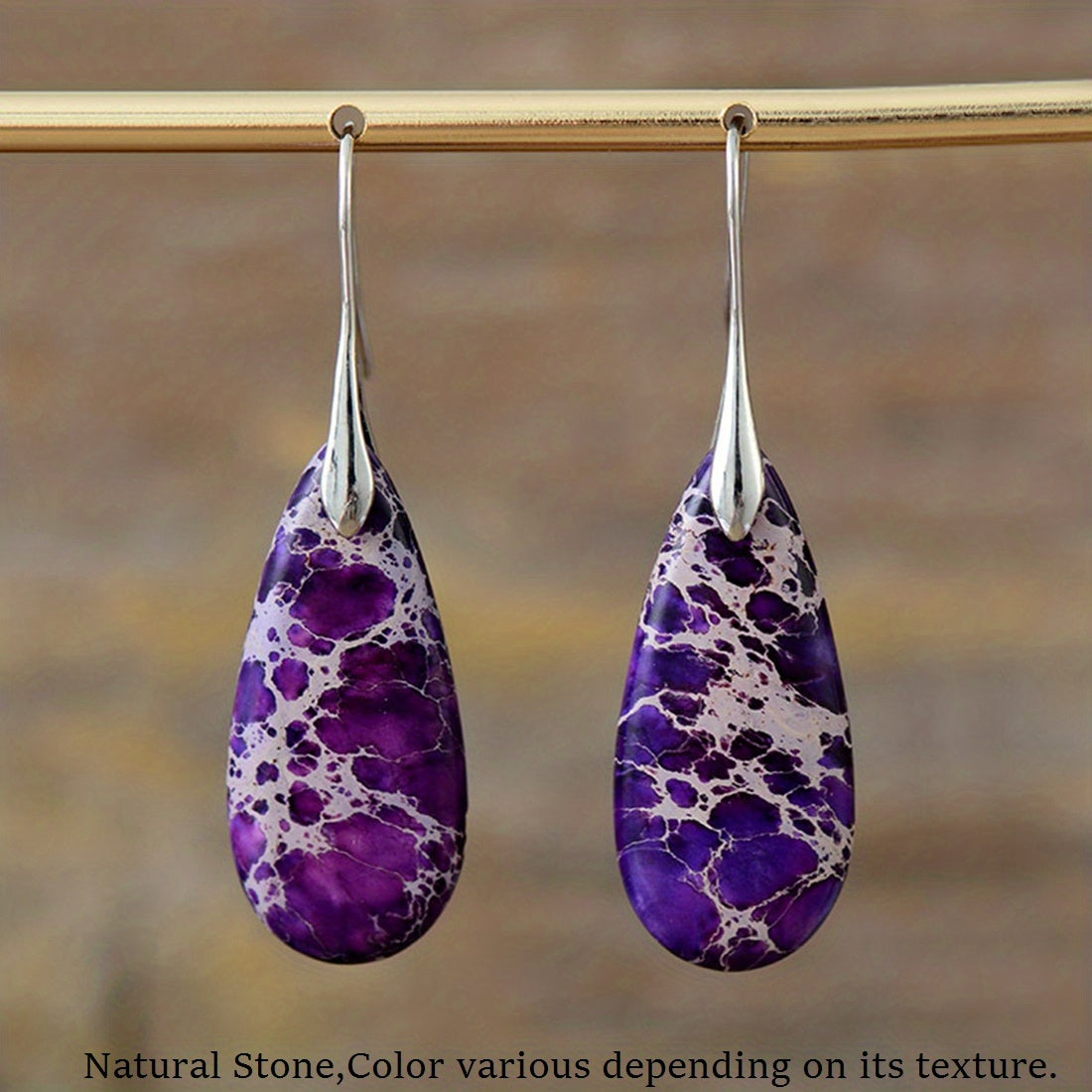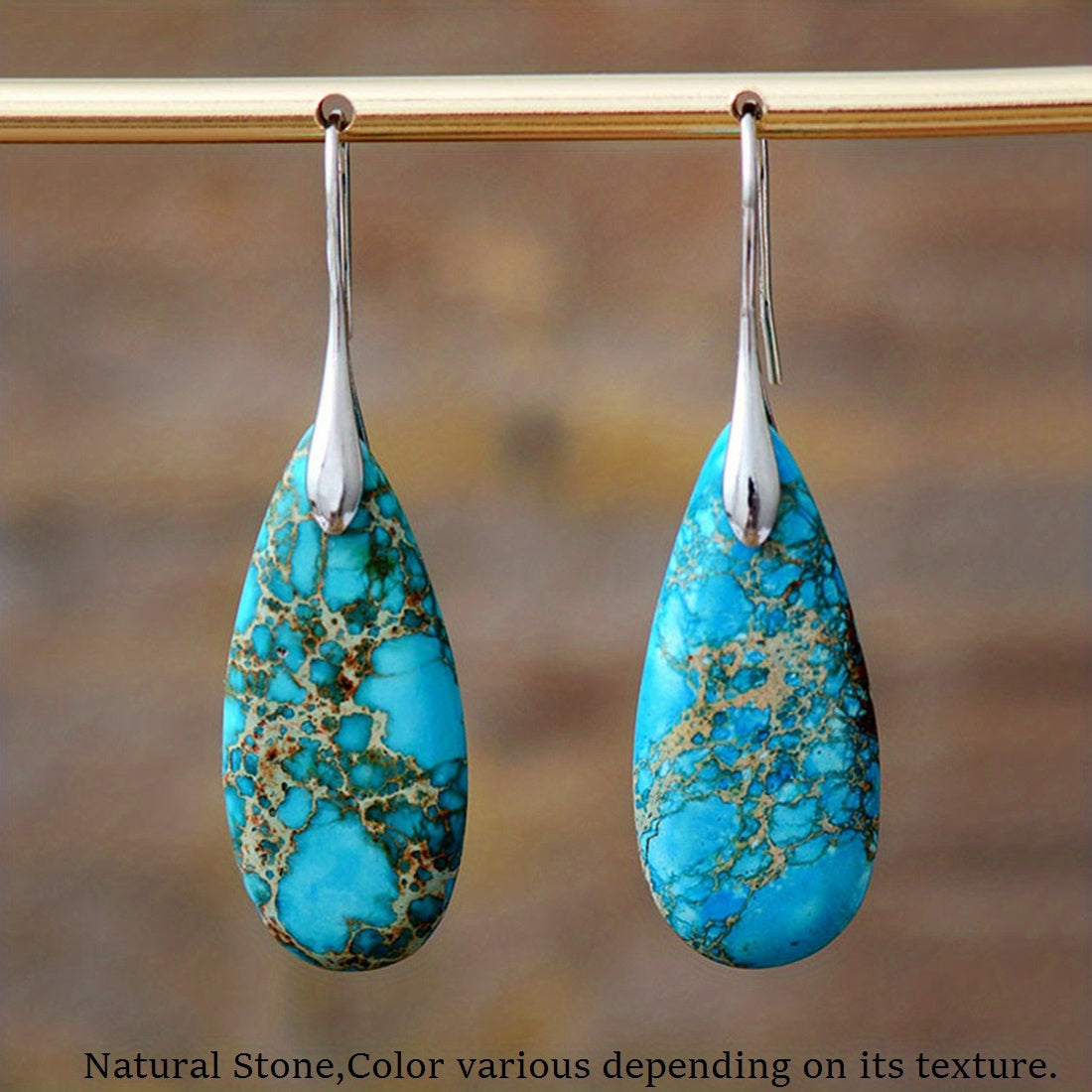 These water drop shape dangle earrings are perfect for daily casual wear. Made of natural stone, they have a retro boho vibe that adds a unique touch to any outfit.
