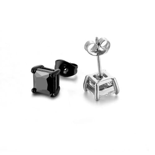 This set includes 2 pairs of no-tarnish and no-rusting 7mm square and stud earrings designed for men.