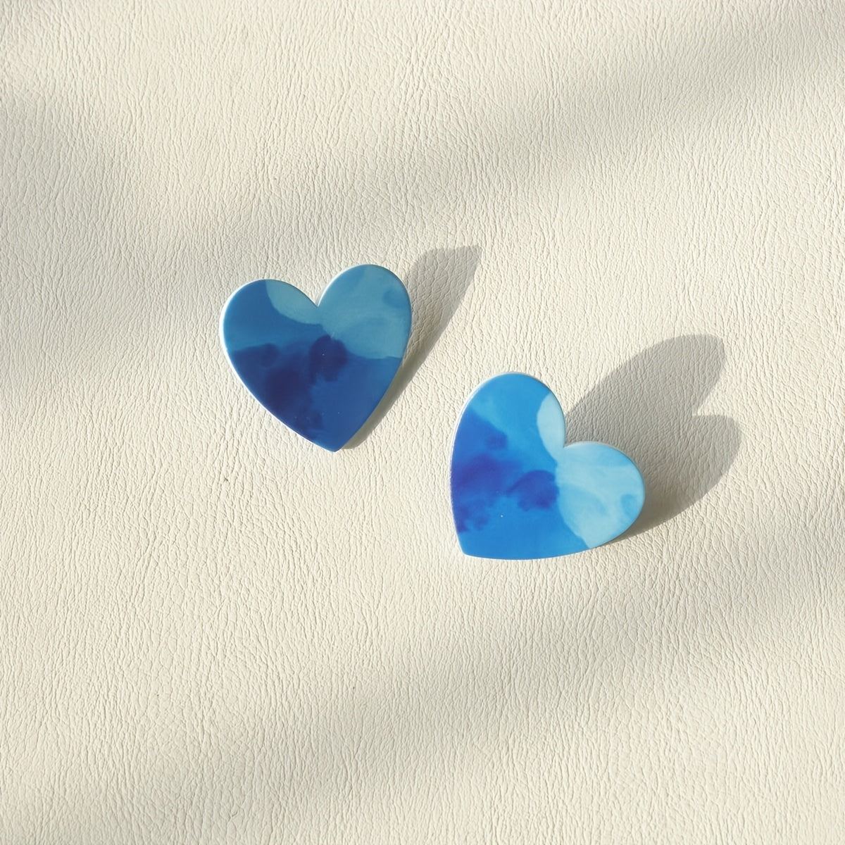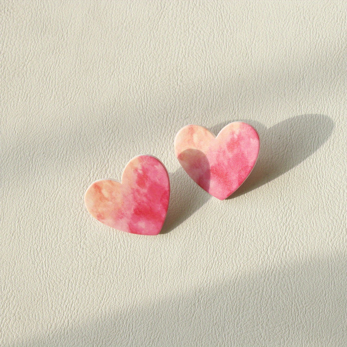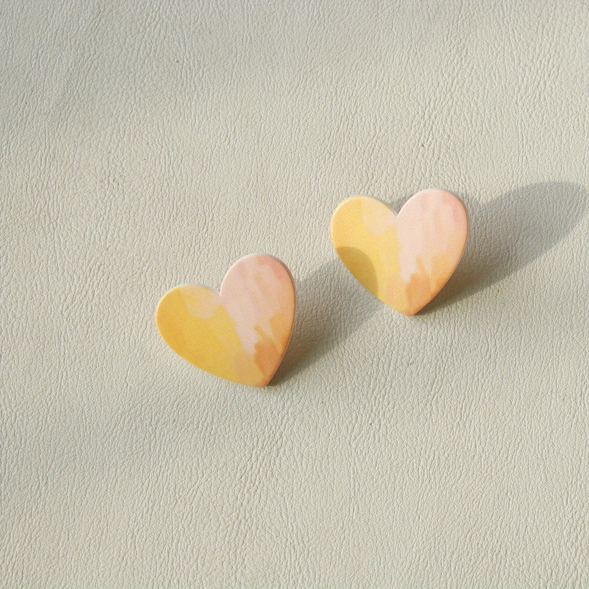 These heart-shaped stud earrings feature an oil painting pattern, making them a unique and stylish accessory. Perfect for those who love minimalist jewelry.