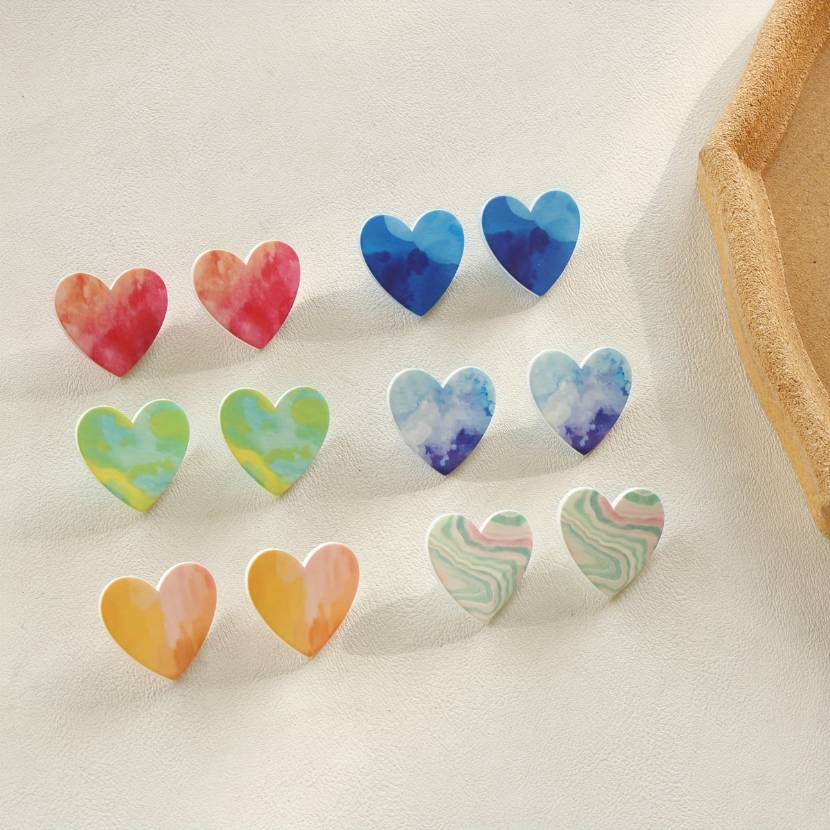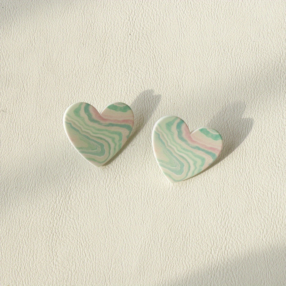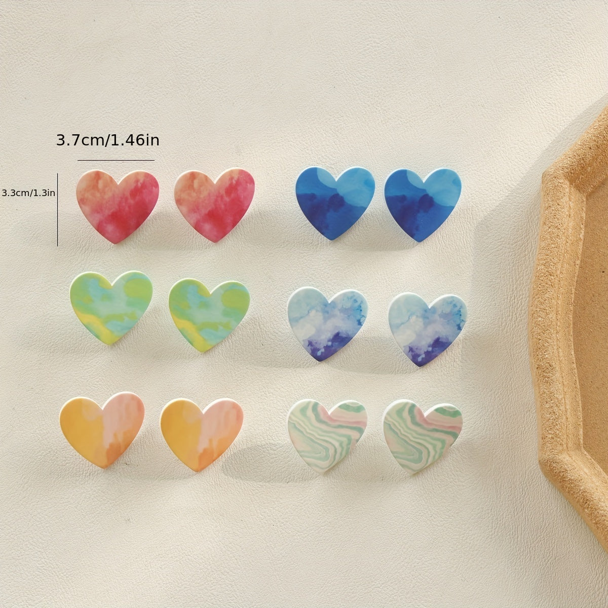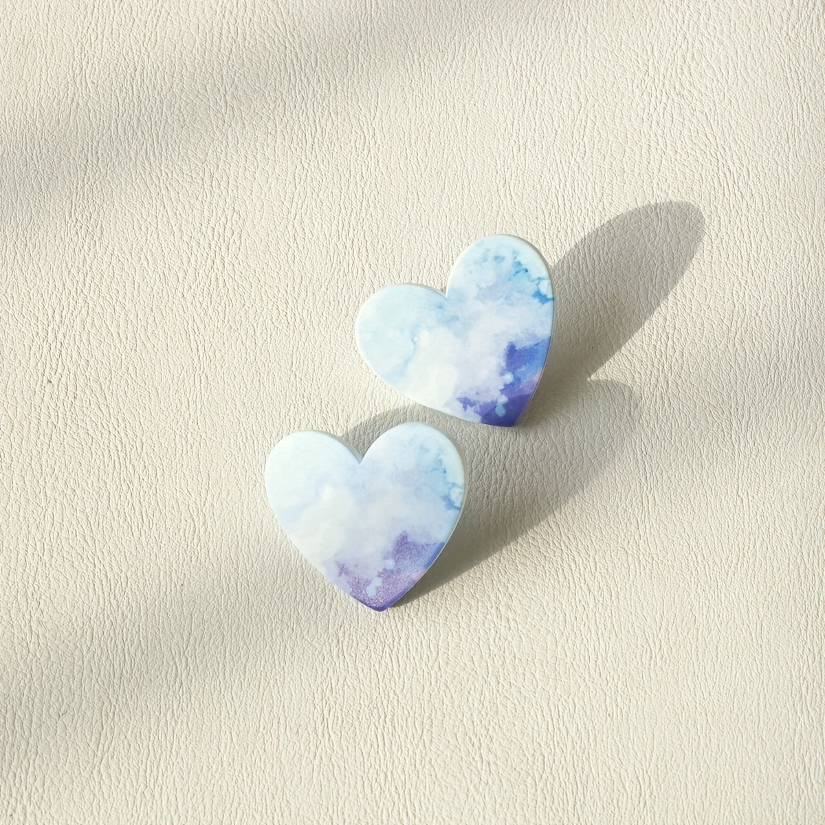 These heart-shaped stud earrings feature an oil painting pattern, making them a unique and stylish accessory. Perfect for those who love minimalist jewelry.