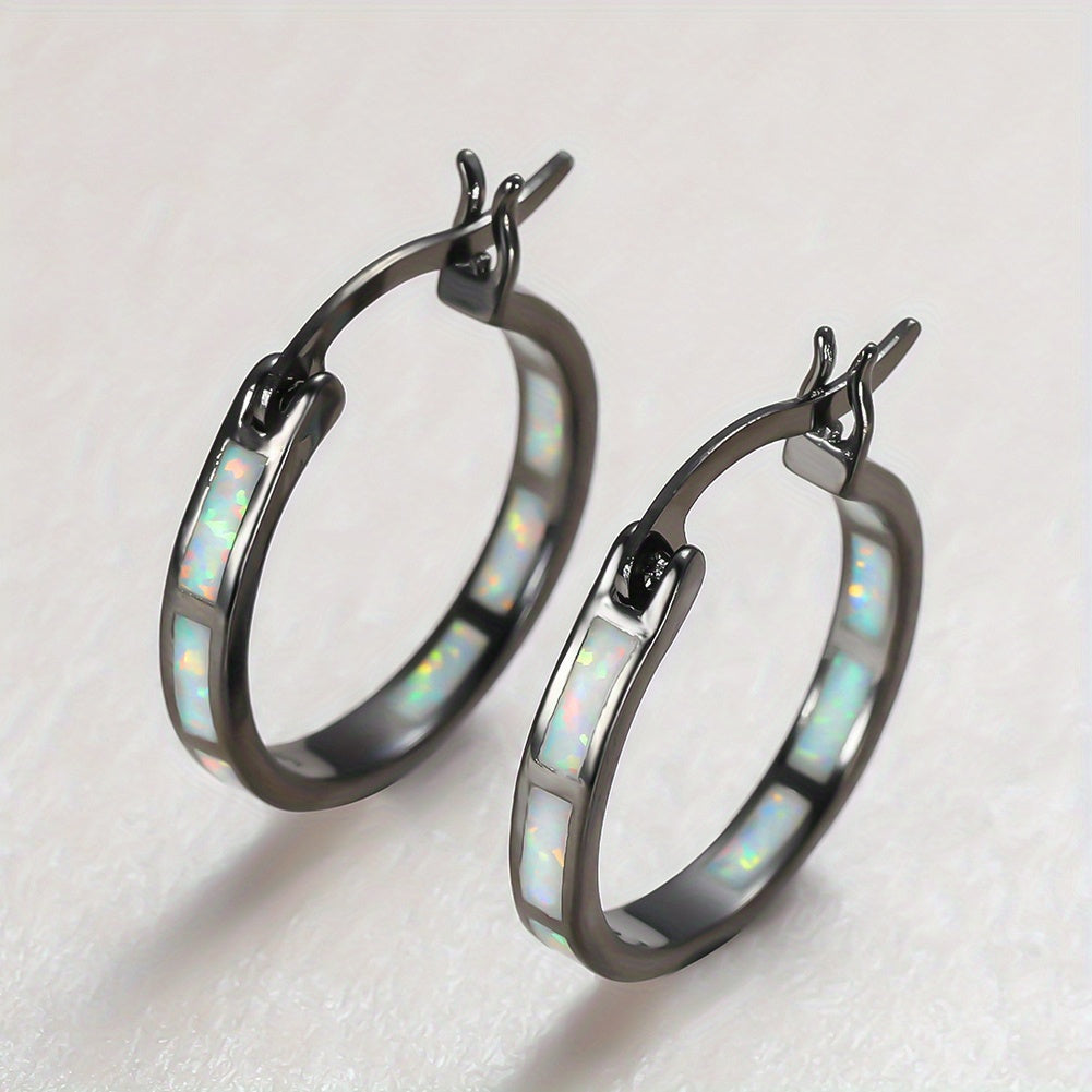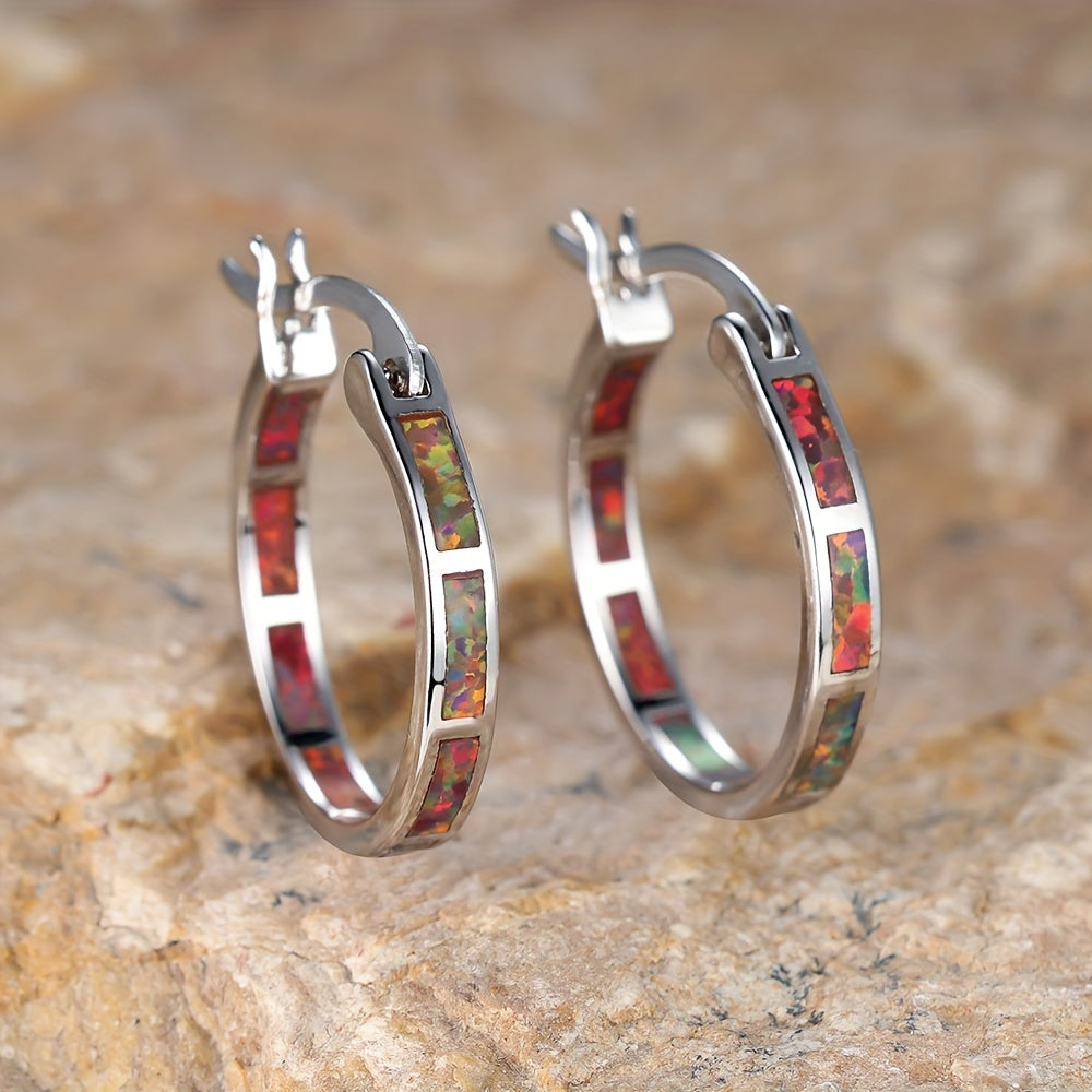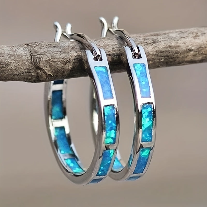These hoop earrings are perfect for adding a touch of retro bohemian style to any outfit. Made with opal decor and copper 18K plated jewelry, these earrings are a great gift idea for females.
