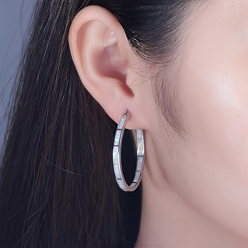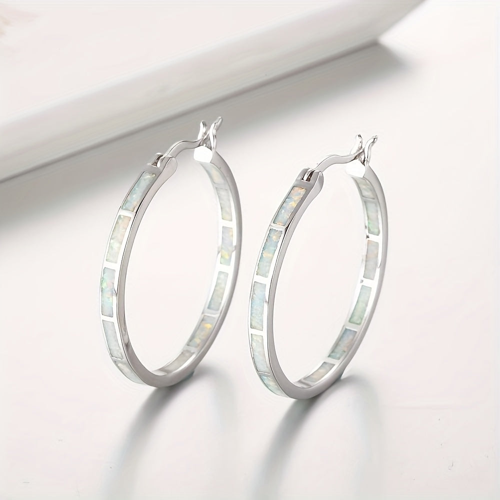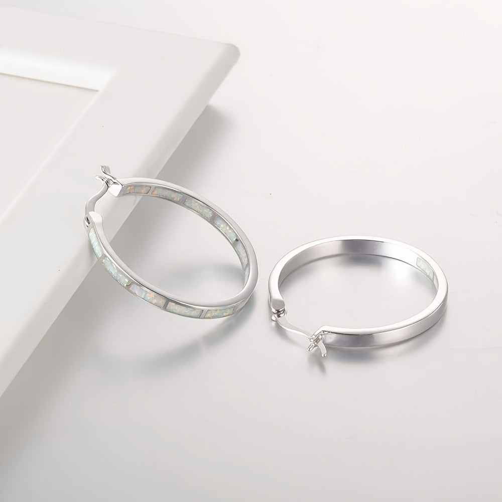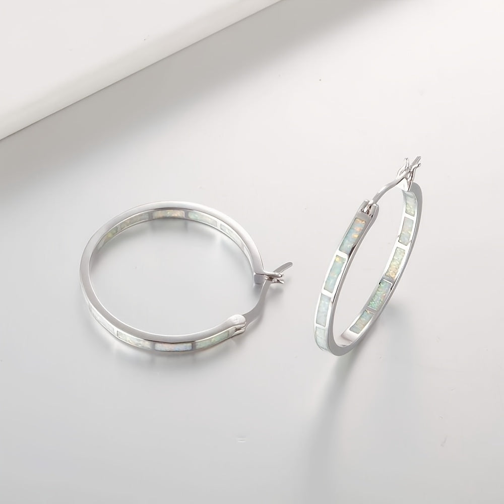 Add a touch of elegance to your casual attire with these sterling silver hoop earrings embellished with opal. Hypoallergenic design ensures comfort even for sensitive ears.