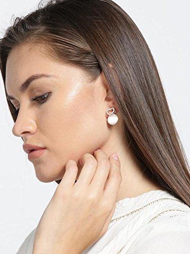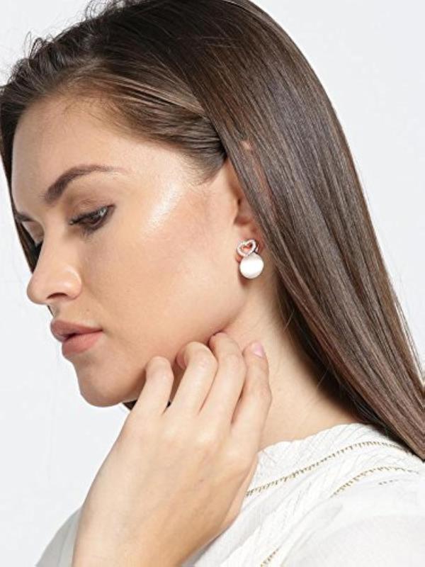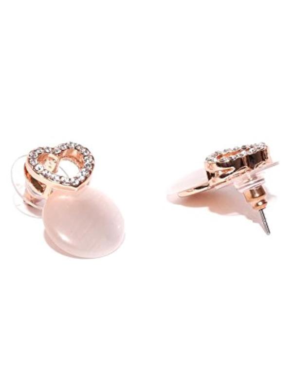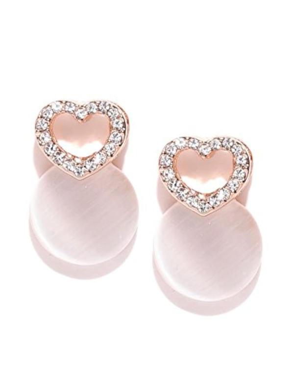 Shower your loved one with these exquisite heart-shaped drop earrings featuring opal and American diamond stones in 18k rose gold plating.