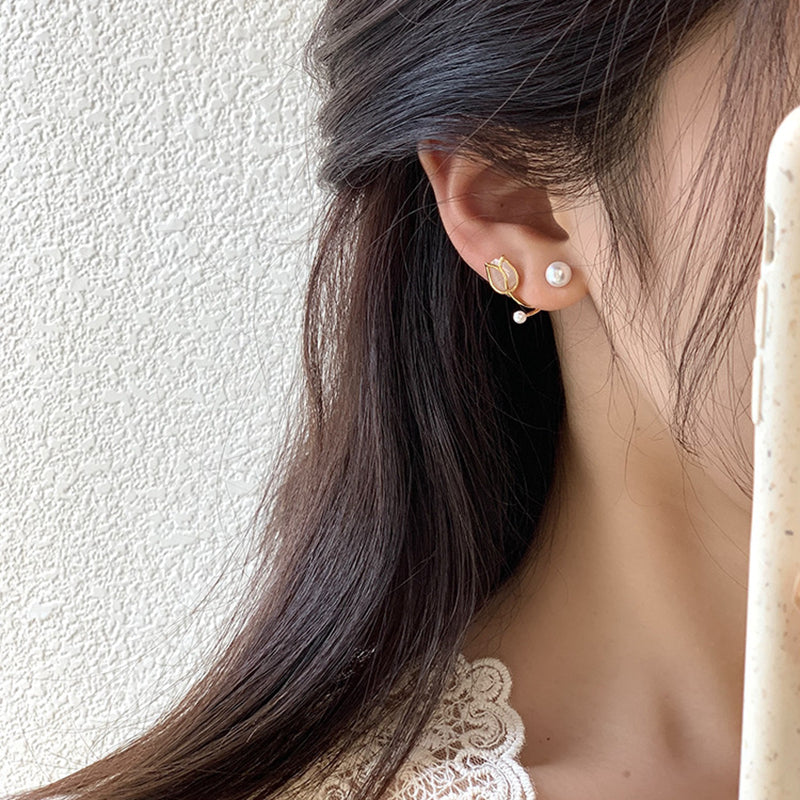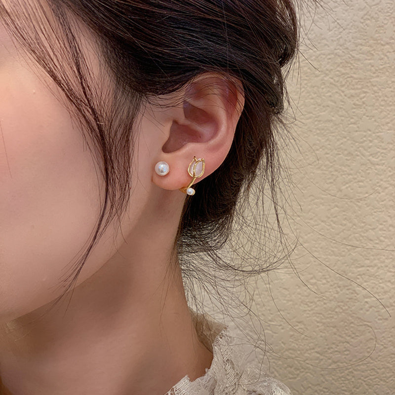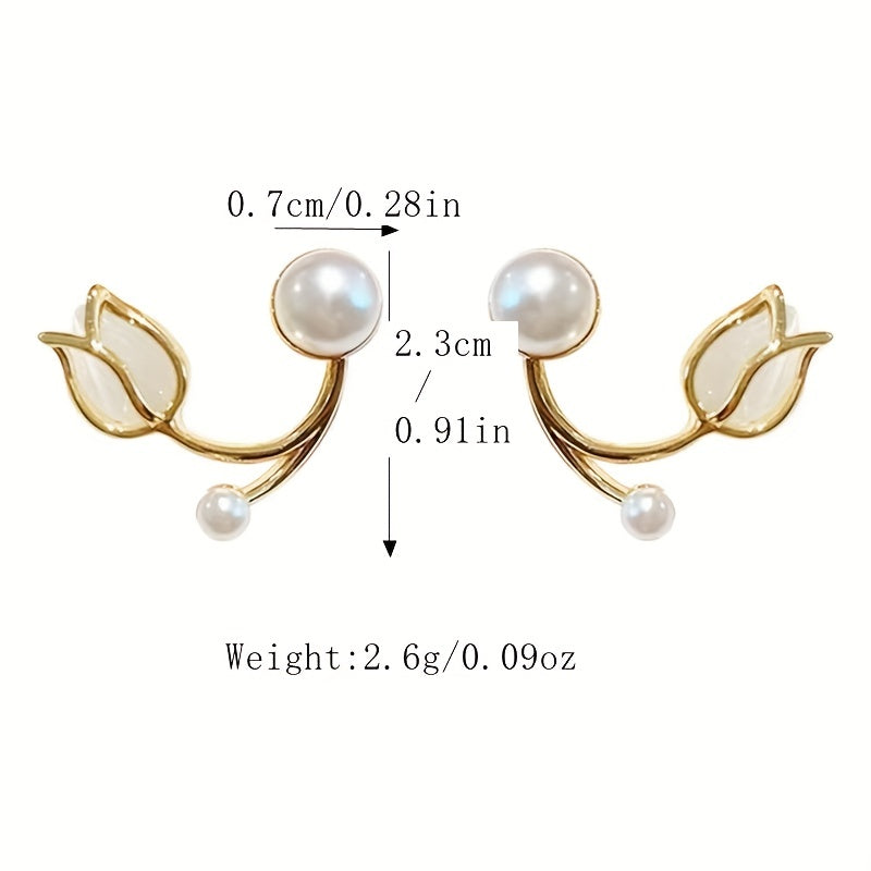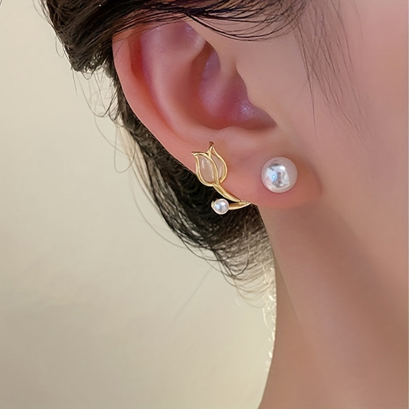 Elevate your style with these high-end opal tulip pearl stud earrings. Perfect for adding a touch of elegance to any outfit.